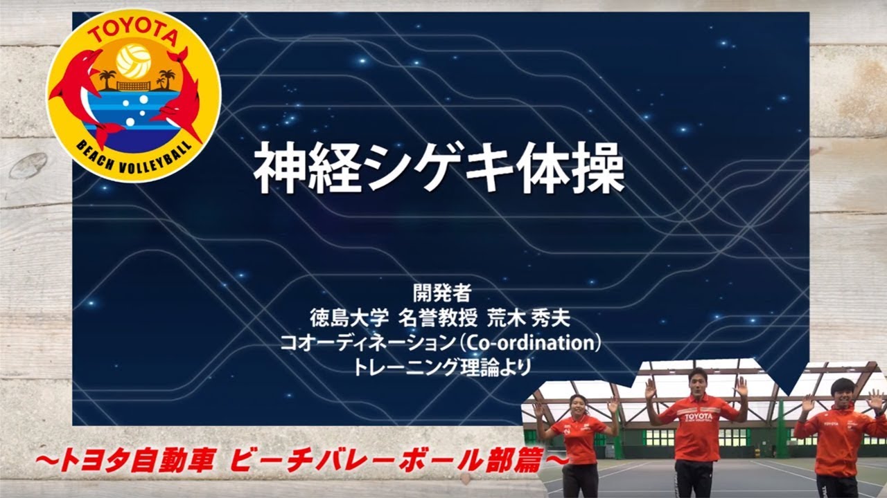 神経シゲキ体操は、日頃刺激していない体幹の運動神経を目覚めさせる体操です。 子どもから、ご年配の方まで、激しいトレーニングをしなくても、全身の神経に必要なシゲキを与えることで身体をイメージどおりスムーズに動かすことができるようになります。 ぜひ、日頃から神経をシゲキして、安全に、そして健康に生活していただければと思います。 Electric CarsElectric VehiclesEVToyotaToyota GlobalvideosvlogYouTubeクルマトヨタ体操神経シゲキ体操ビーチバレーボール部篇自動車Related Posts 2026 Toyota Grand Highlander Overview | Toyota January 9, 2026 第18回トヨタ夢のクルマアートコンテスト | 表彰式&ワールドコンテスト受賞作品 | Toyota January 9, 2026 The 18th Toyota Dream Car Art Contest | Award Ceremonies & World Contest Winners’ Artworks | Toyota January 9, 2026 第18回トヨタ夢のクルマアートコンテスト | 最終審査会&ワールドコンテスト受賞作品 | Toyota January 9, 2026 The 18th Toyota Dream Car Art Contest | Final Judging & World Contest Winners’ Artworks | Toyota January 9, 2026 2025 Toyota RAV4 vs 2025 Hyundai Tucson | Toyota January 8, 2026Write A CommentYou must be logged in to post a comment.