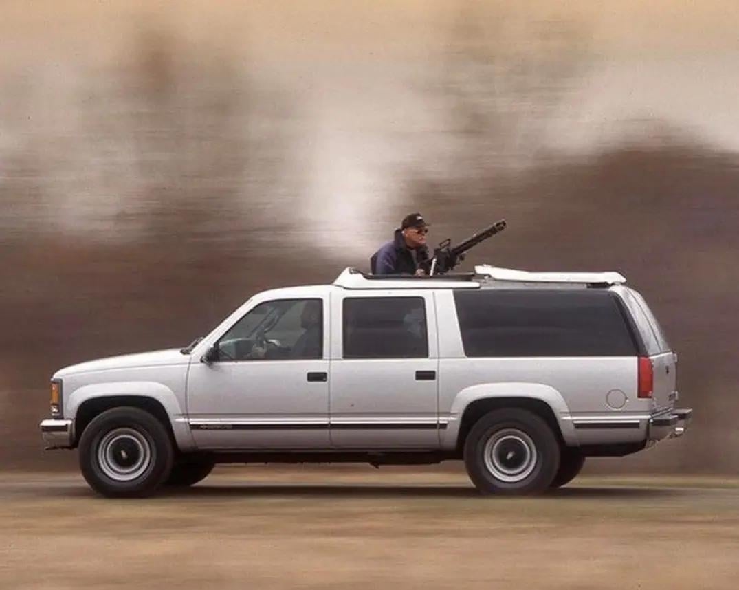 Chevy Suburban with a built in General Electric GAU-17 machine gun