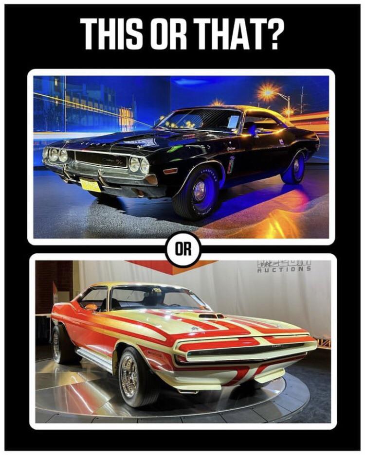 What do you all think the Black Ghost Hemi Challenger and the Rapid Transit System Cuda will bring at Mecum Auctions? Two legendary Mopars! Cars MemeClassic CarsClassic Cars MemememeRelated Posts 1950 fiat 1100e zagato – 1 of few January 15, 2026 Monzinha January 15, 2026 [Aston Martin Valhalla] Spotted January 15, 2026 You have a Land Rover Defender, what are you defending? January 15, 2026 Goldfish mobile January 15, 2026 1959 AC Ace, 2.0 liter, 4 speed January 15, 2026Write A CommentYou must be logged in to post a comment.