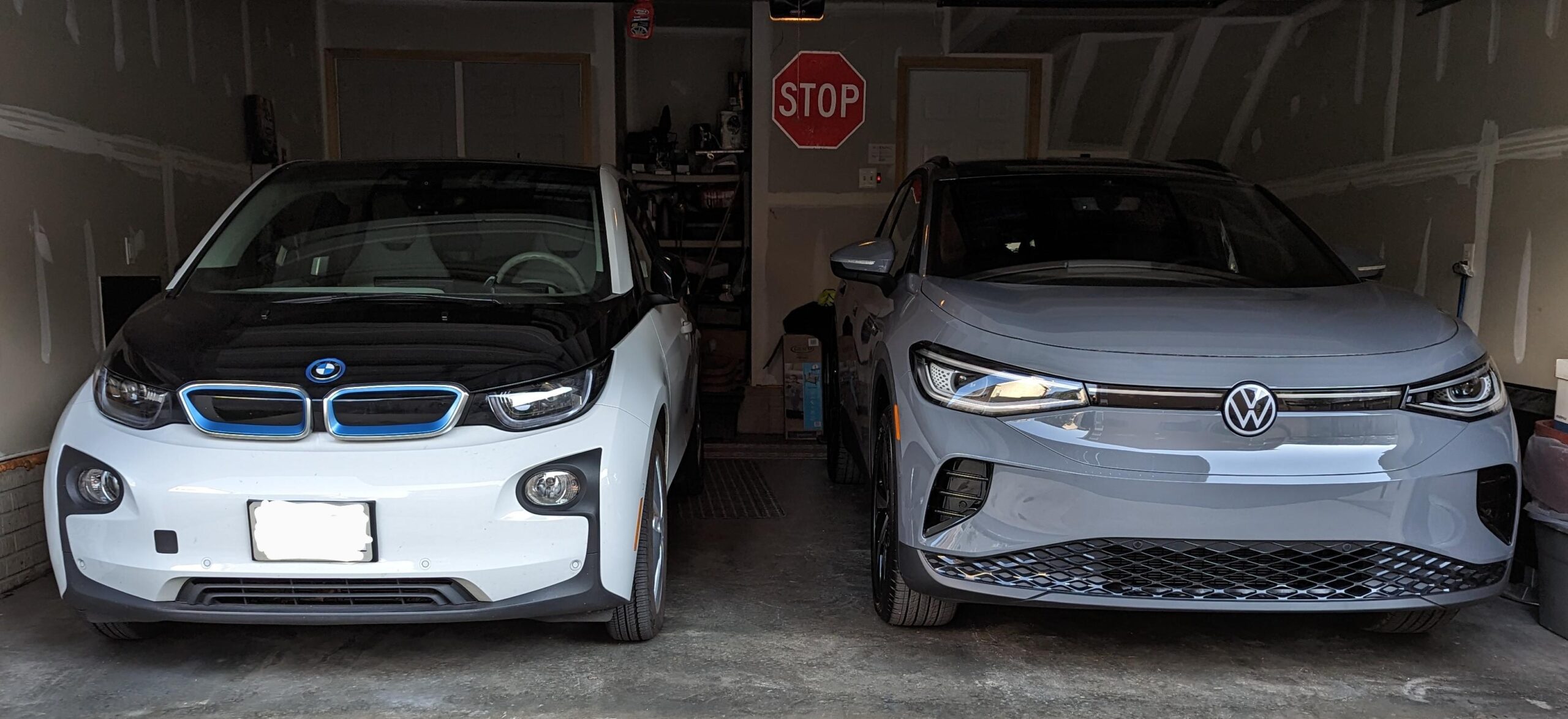 Thanks to the folks on r/VWid4owners sub we now have a full EV stable with the Pure Grey 2023 VW ID.4 Pro S AWD flanking my 2015 BMW i3.