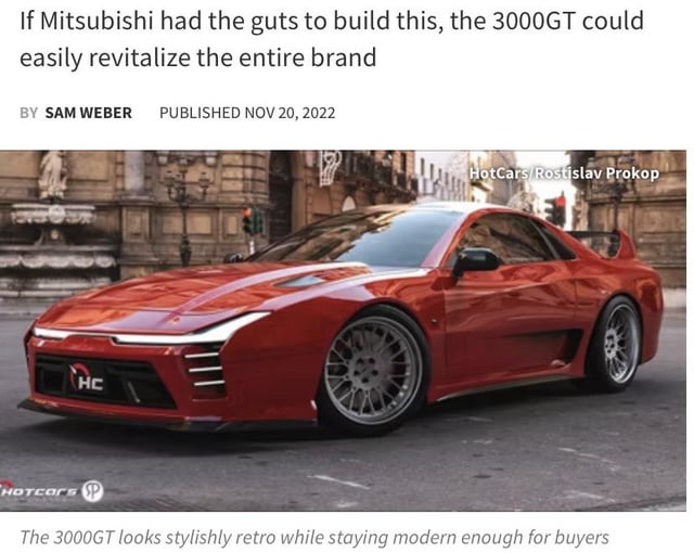 After the questionable launch of the new Supra and Nissan Z, I felt like a 3000GT VR4 could actually take the automotive world by storm if done right. I found these renders online and thought it looked incredible. I know Mitsubishi will never do this but could you imagine? With all the Hype Hyundai got from the N Vision 74 concept, I wouldn’t be surprised if one actually found its way to production. Other automakers should take notes and hop on board.