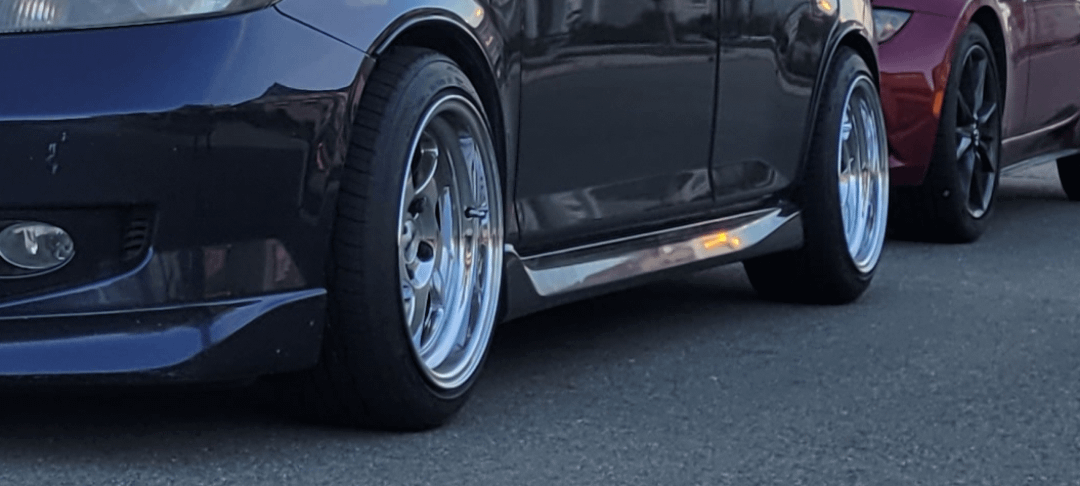 I currently have 16×8 wheels with 195/45 tires. they stretch pretty nice and were exactly what i was going for. 16×8 is very popular so it wasnt hard to find good looking specs.