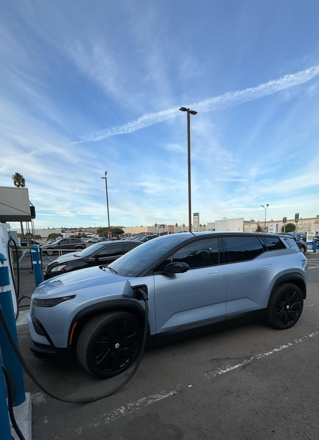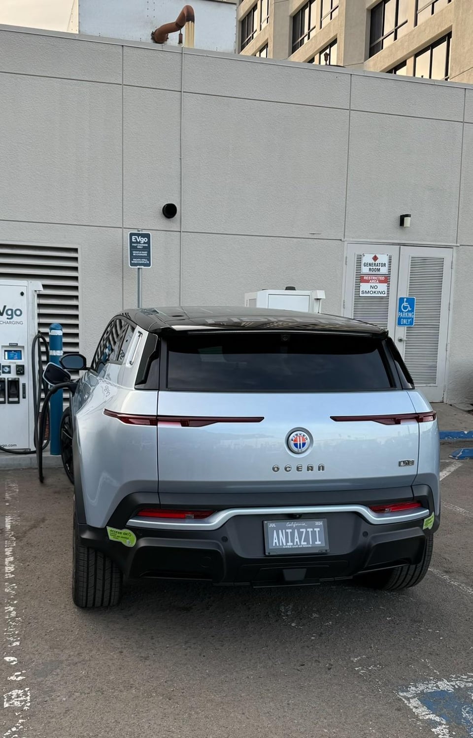 Spotted a [Fisker Ocean] charging in California, also first time seeing the electronic license plates.