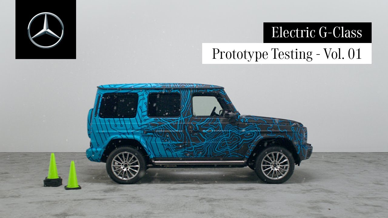 Welcome to the electric G-Class testing Series today we send the Prototype of the electric G-Class back into the80s here it embarks on a top secret mission code name Shuckle possible the electric G-Class proves itself against its ancestor their mission is to deliver these unknown contents to the top of the