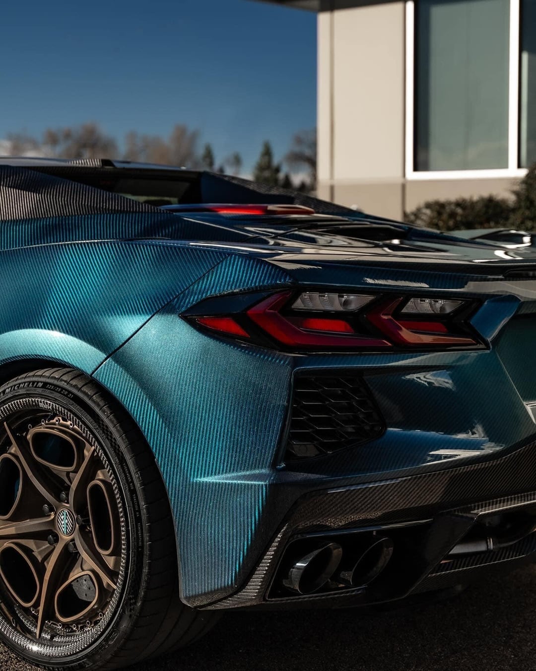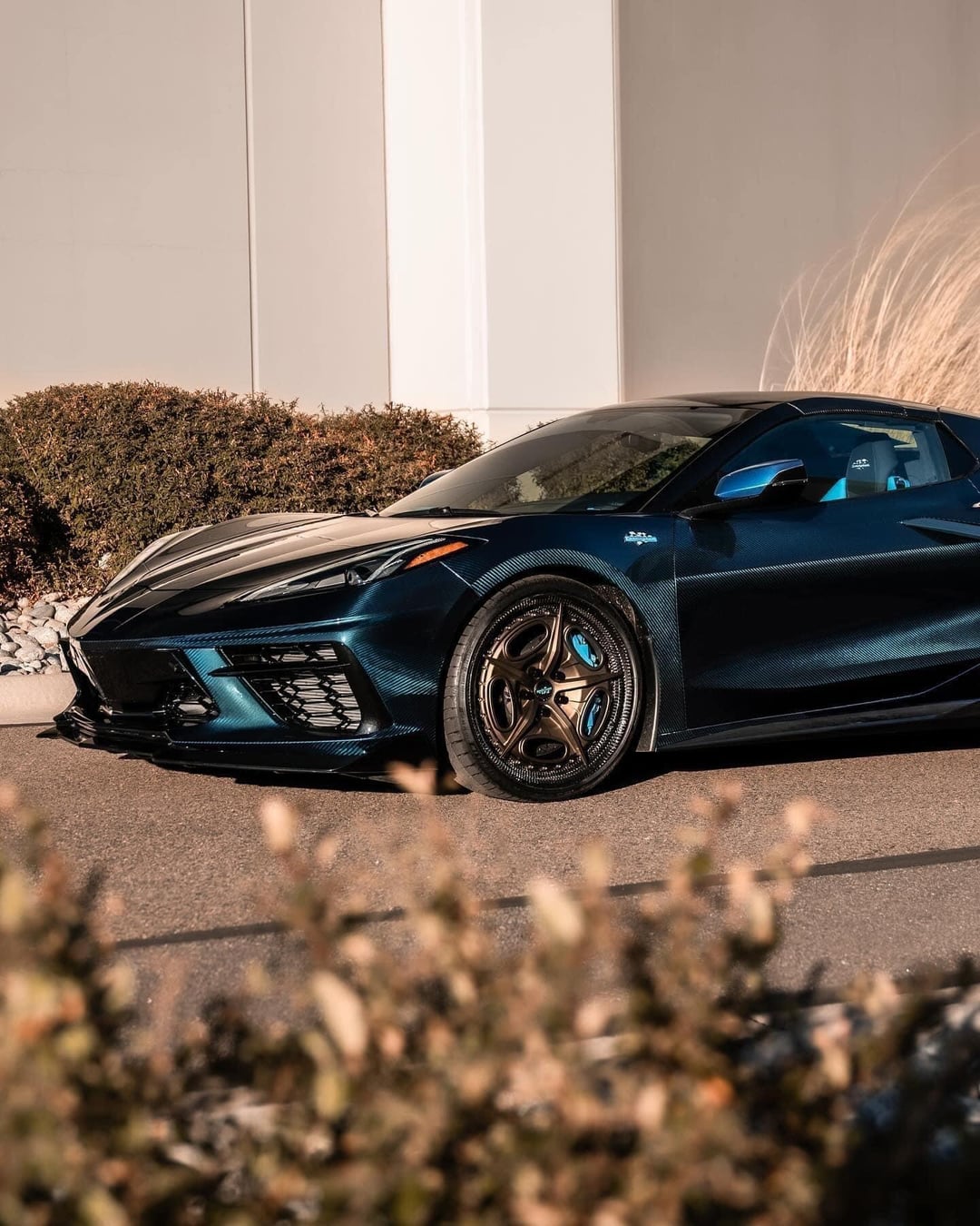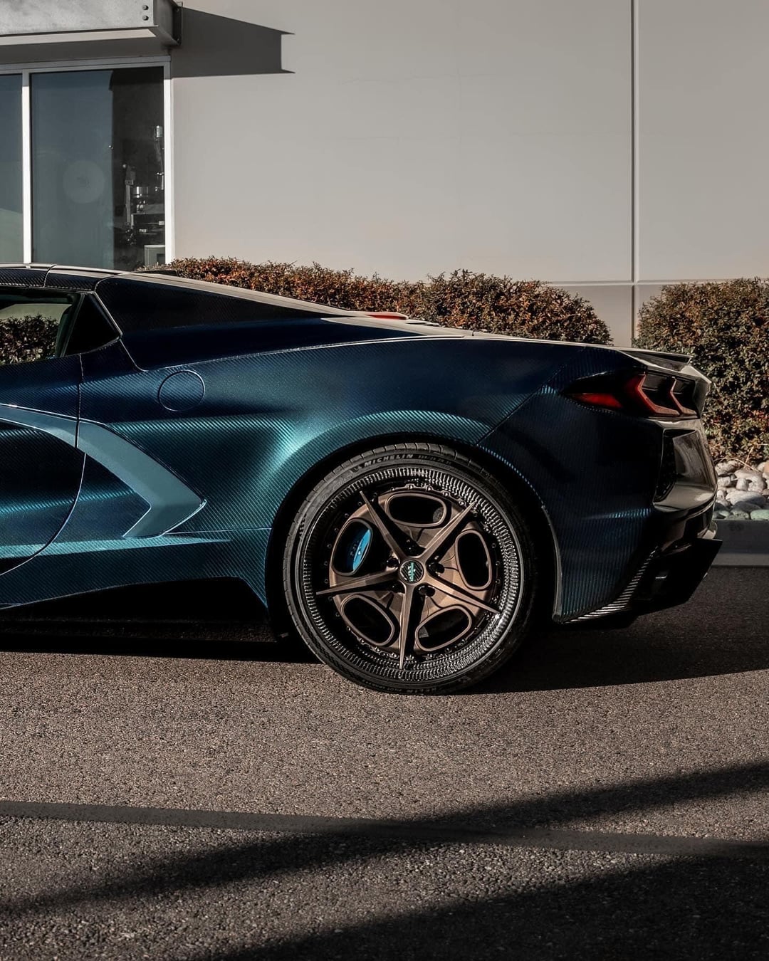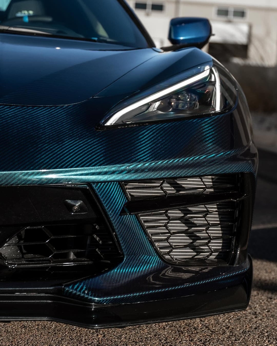 I made a full carbon 4×4 V-Weave C8 convertible. I went with the Infusion process. Need to finish the door jambs but that’s almost done. The paint is a blue flop we did in shop.