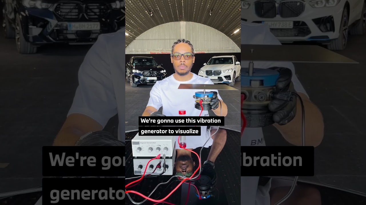 All right boom man’s at BMW to test out the new hydrogen car in it we’re going to use this vibration generator to visualize the sound waves produced by the hydrogen car this hydrogen car actually drives silently because it’s powered by an electrical motor in it and