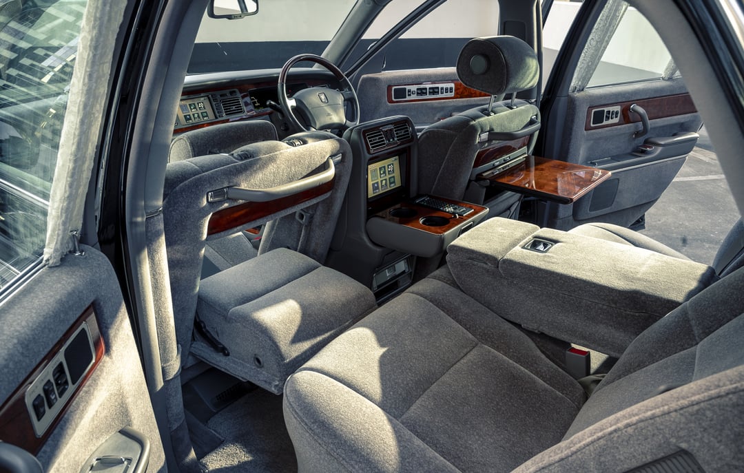 there’s a dinner tray for the back seat on the driver’s side. it flips down just like on an airplane (pass side you can kick your feet through the front seat to lounge)