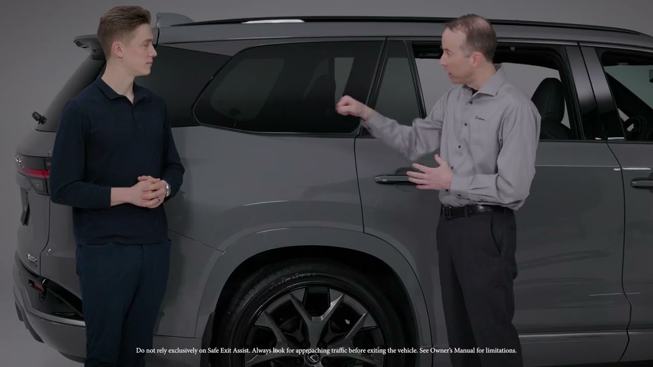 Thing about the digital LGE door handles is actually tied into the safe exit assist feature so while the vehicle’s perked if it detects another vehicle or cyclist approaching from the rear it can actually delay the doors from being open in an effort to prevent a collision it’s smart pretty clever