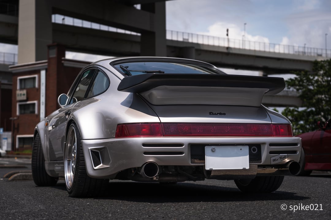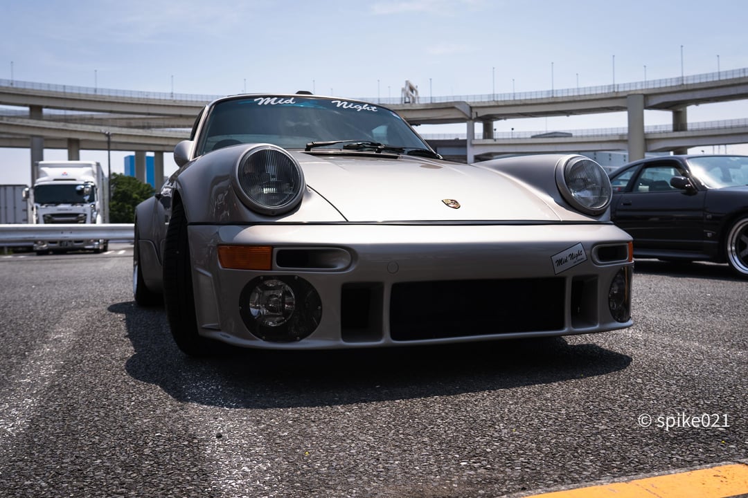 964 with full Auto Garage TBK bodykit at Daikoku PA