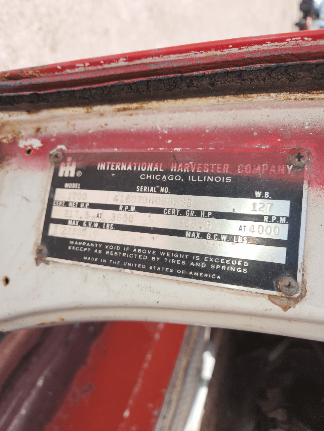 Have a 1970 International dump truck and and I’m trying to find a VIN. Don’t have the title, and I’ve looked in all the usual spots (bottom of windshield, door jams, firewall). All I’ve found is this tag on the door jam with a serial number.