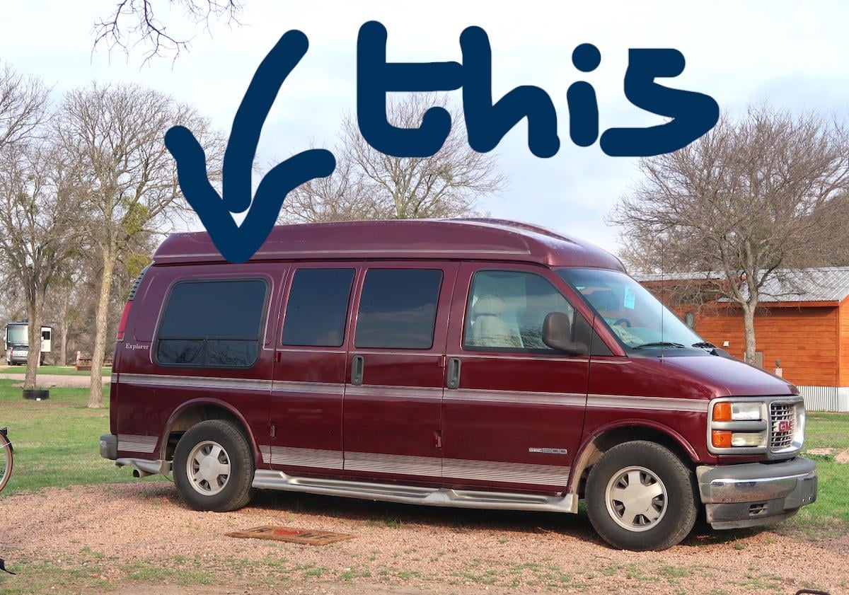 Most conversion vans have a bench seat in the back that transforms into a bed. The big windows are for when you’re in bed you can still see out