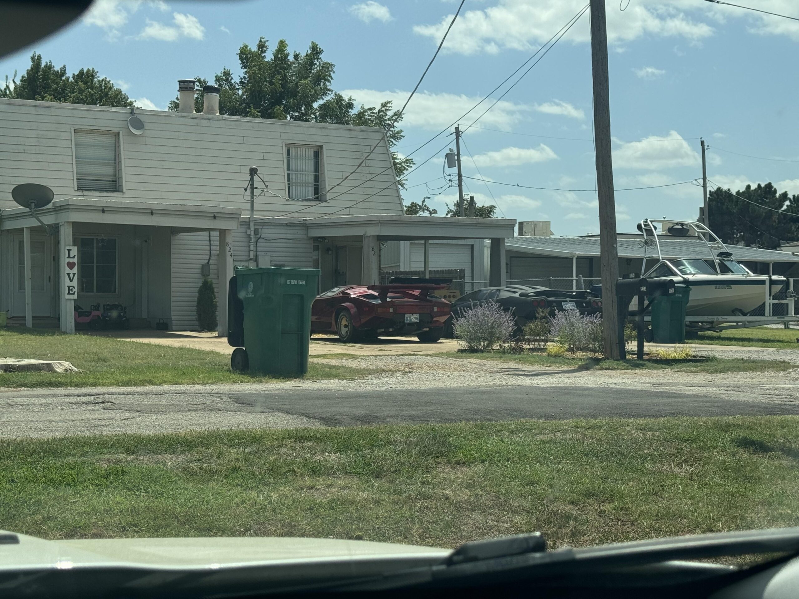Looks like he’s got his priorities straight. At least pull it under the carpool, unless your MV Agusta collection is there.