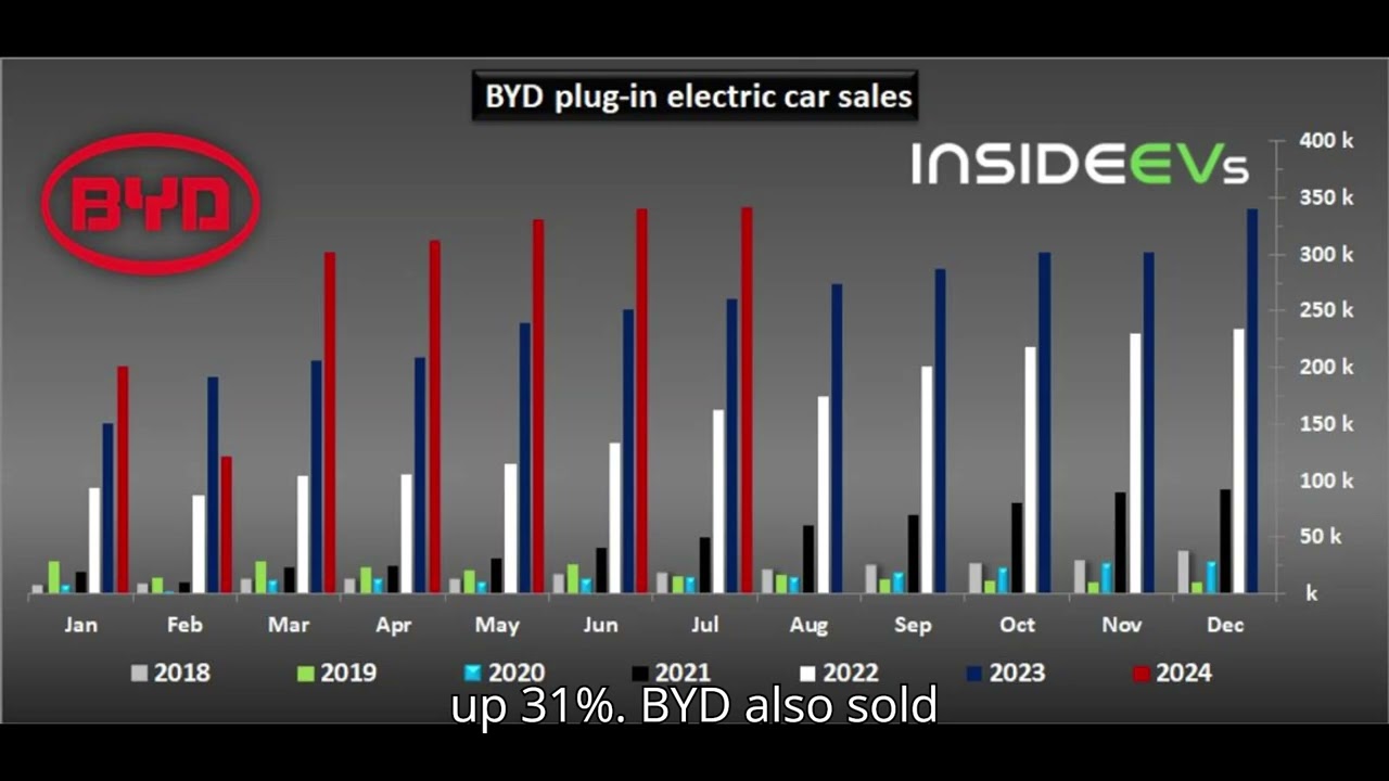 BYD sets a new record with global plug-in car sales in July 2024, driven by a significant rise in PHEV sales. Despite a slight decline in EV sales, BYD’s focus on plug-in hybrids has led to impressive growth. Discover the top-selling models and how BYD is challenging Tesla’s dominance in the EV market. Stay updated on the latest in electric vehicle trends! #BYD #ElectricVehicles #PlugInHybrids #EVSales #BYDRecordSales #TeslaRival #QinFamily #SongFamily #BYDYuan #BYDSeagull #ElectricCars #SustainableMobility #BYDvsTesla #AutomotiveTrends #GreenEnergy #PHEVGrowth