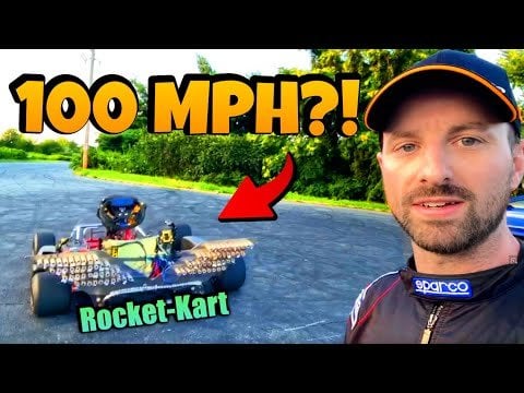 The goal with this build is to break 100mph. The motor and battery are maxed at 82mph, so how do I make it faster? I added 80 E-12 rockets to the back of the kart that combined produce 560lbs of thrust. This video is the first test of the rockets.