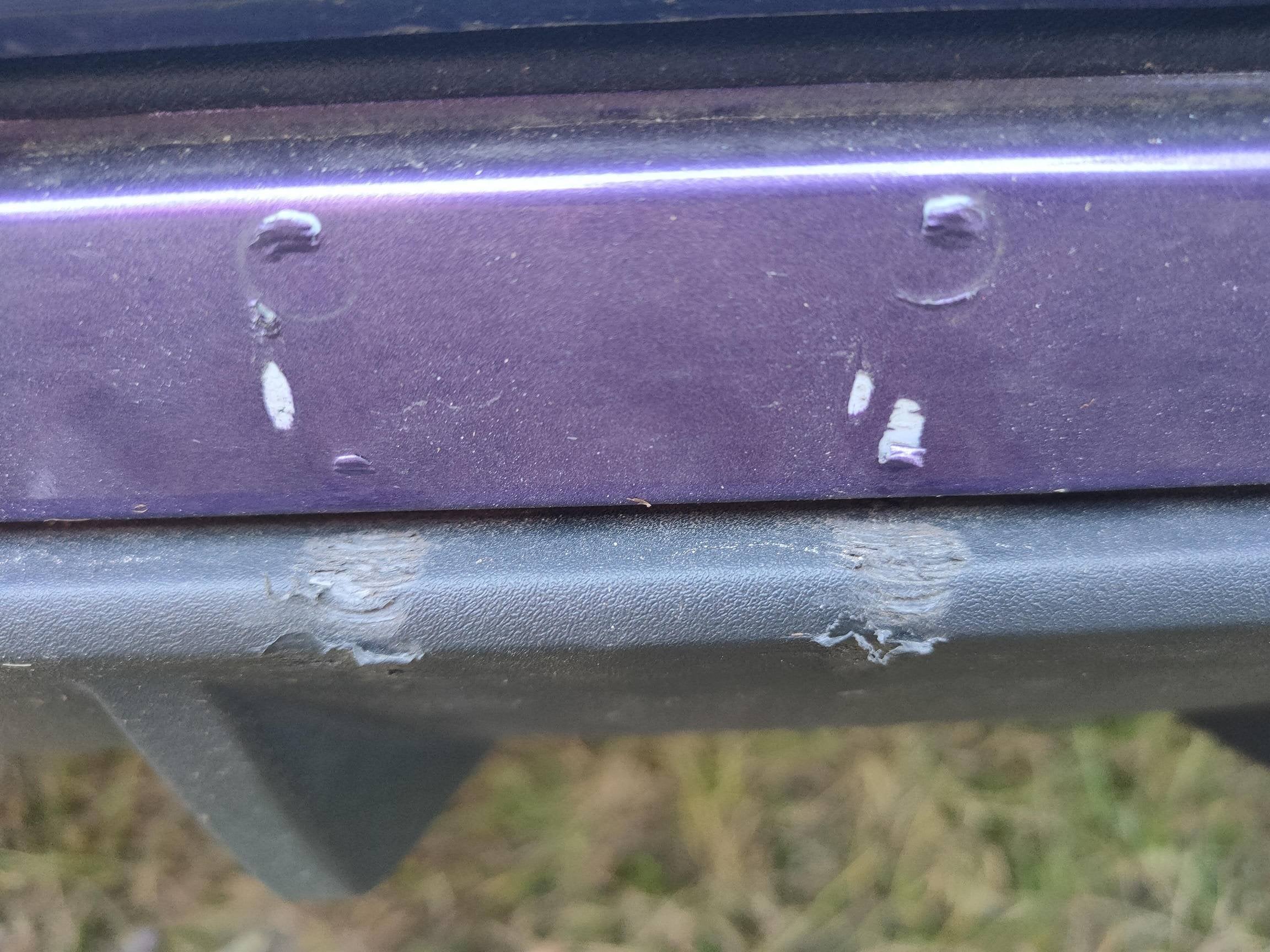 Notice the circle marks right above the scratches, looks like someone tried to pry off the splitter with some kind of tool?