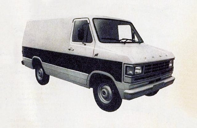Built on the chassis of the Ford F-100 and F-1000 pickup trucks (four-cylinder engine, diesel, ethanol or gasoline), it had a monocoque body with a steel frame covered in fiberglass-reinforced plastic and only two doors on the sides, for the driver and assistant; access to the cargo compartment was through a double-leaf door at the rear.