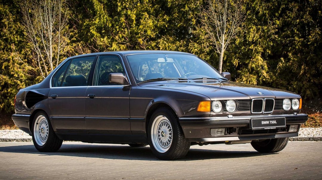 The BMW 767iL V16 (based on the BMW 7 Series E32 750i) with a prototype Goldfisch V16 gasoline engine, with its cooling installed in the trunk, making the storage useless. The engine was developed between 1987 and 1988 and it was never put into mass production.