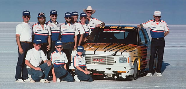 The Banks Power LSR pickup. Despite having the aerodynamics of a brick and a naturally aspirated V6 (albeit stroked to 5.0 L), the truck set a two-way average speed record of 210 mph in 1990.
