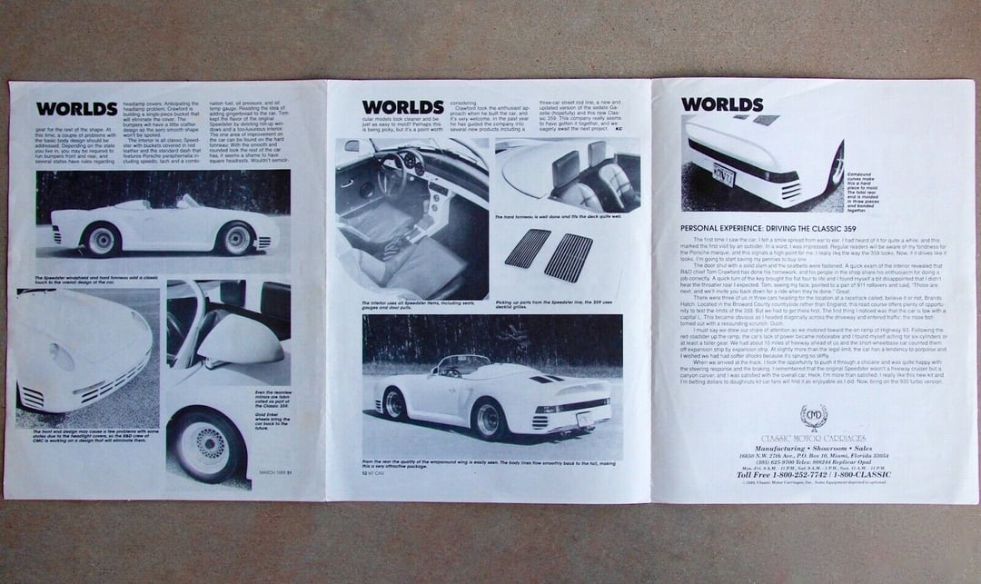 > Classic Motor Carriages offered the 359, a modern twist on the Porsche 356 Speedster that would complement its more original-style Beetle-based kit.