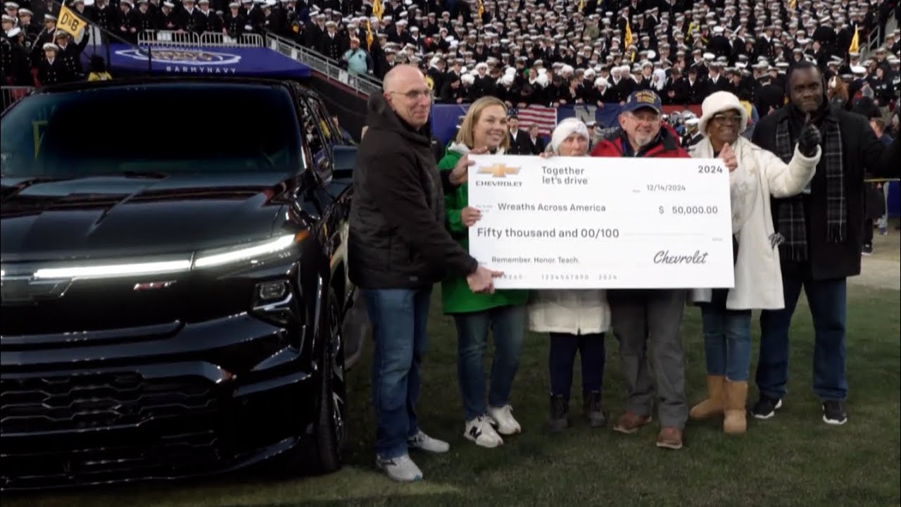 For 2024, Chevy has proudly continued to support the work of Wreathes Across America and their efforts in veteran aid. We wrapped up our months-long efforts at the Army Navy game in a electrified ceremony.