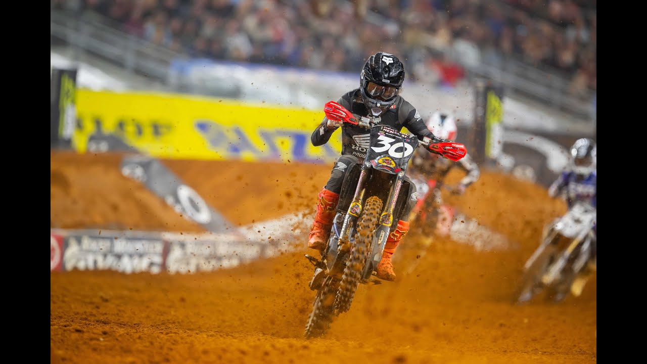 Honda HRC Progressive resumed 250SX West competition this weekend in Arlington, Texas, for round 7 of AMA Supercross. The event featured the second Triple Crown round of the year, testing riders with three intense races per class. Despite still suffering from injured fingers, Jo Shimoda put in a steady performance throughout the night, securing fourth overall after a strong third-place finish in the final race.