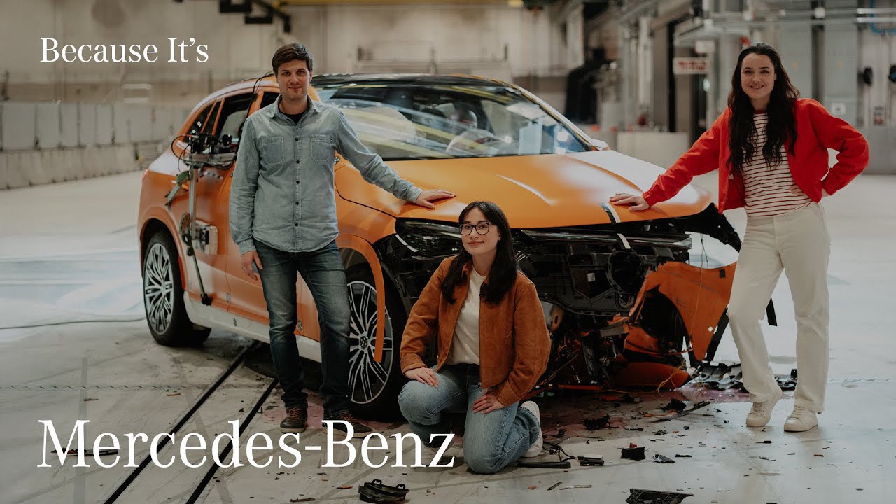 Becky and Elly meet up with the Mercedes-Benz experts to learn more about the history of safety testing and how a Mercedes-Benz is constructed to improve passenger safety inside. Next up they get to see up close, how an EQE SUV is prepared for a frontal crash and how much data is collected to gain the necessary insights.