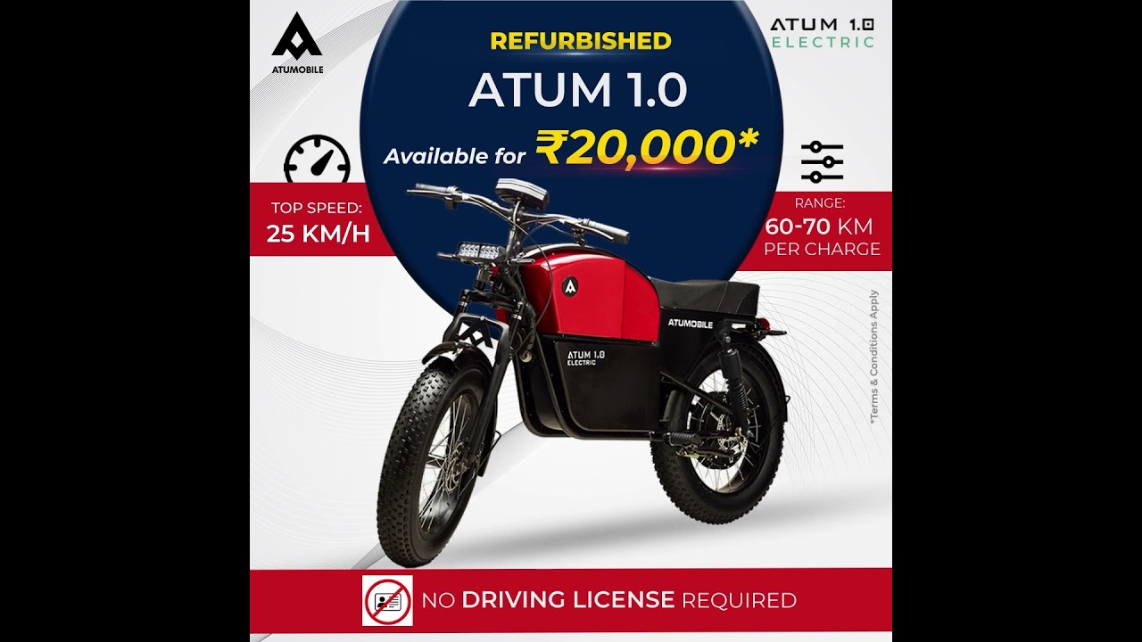 Atumobile offers the Refurbished Atum 1.0 Electric Motorcycle at an incredible ₹20K.