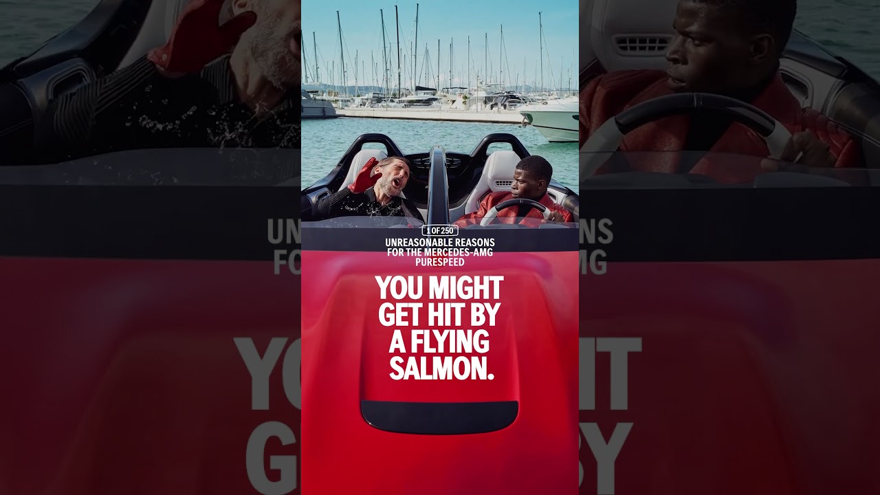 The Mercedes-AMG PureSpeed does not have a windshield, but here’s the catch — the chances of being hit by a flying salmon are low, but not zero.