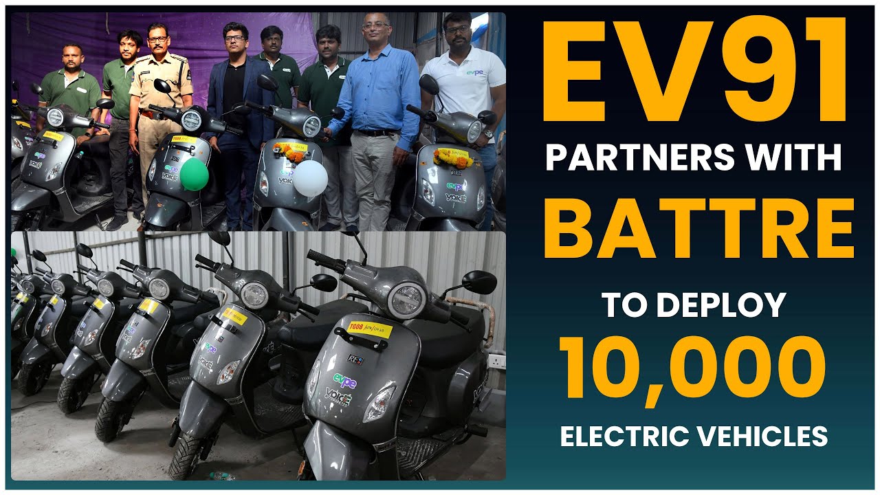 EV91 partners with BattRE and evpe to deploy 10,000 electric vehicles across India, revolutionizing last-mile delivery, EV fleet leasing, and sustainable transportation. With a growing footprint in cities like Bangalore, Chennai, Hyderabad, and Pune, this alliance is empowering women riders, driving green logistics, and offering EV loans, subscriptions, and ICE to EV swaps. As a leading electric mobility aggregator, EV91 is enabling a cleaner future through tech-enabled logistics and rural-urban mobility.