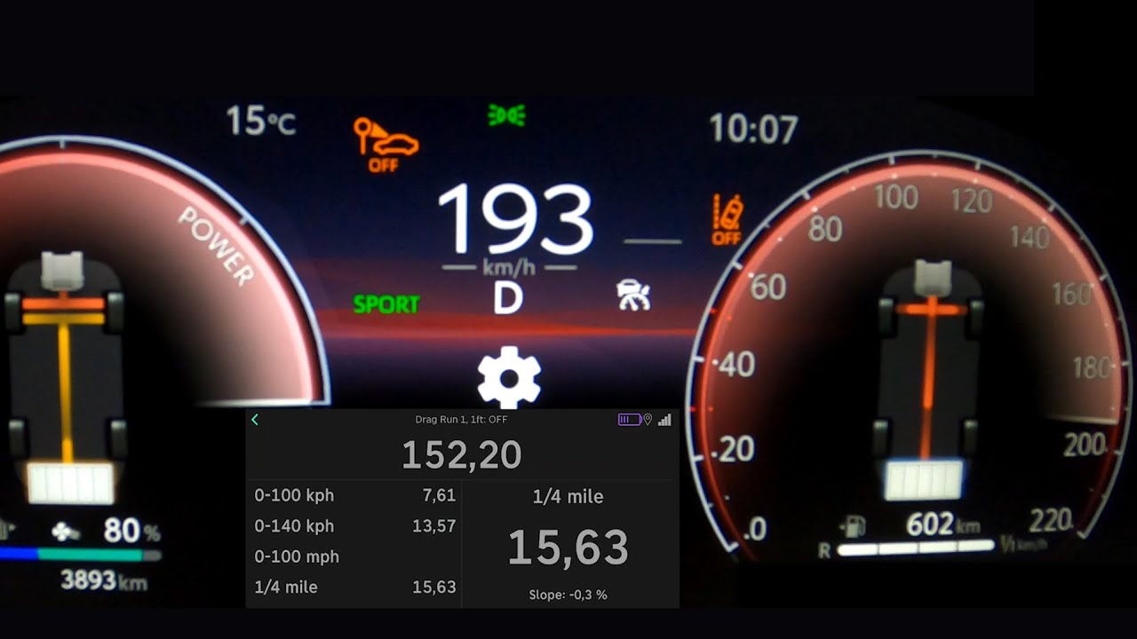 03:17 Overtake acceleration in normal auto hybrid mode with “discharged” battery (entladener batterie)