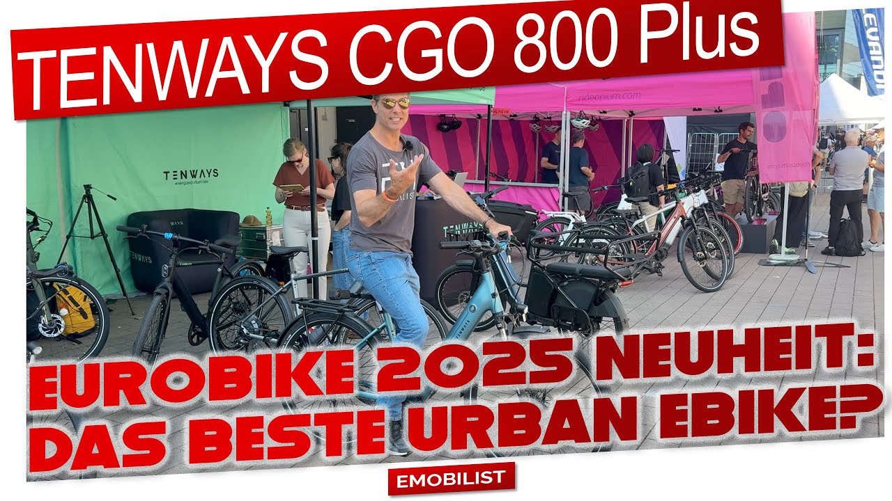 servus Leute ich bin der Tom ihr seid bei mir Mobilist und ich bin hier auf der Eurobike 2025 und zwar zusammen mit dem Tony dem Tony von Tenways tony möchte uns heute das CGO 800 Plus vorstellen wir hatten ja schon das CGO 600 auf dem Kanal das CGO 600 Plus hatten wir auch schon und zwar was ist das Besondere an dem CGO 800 Plus den 800er ist eigentlich entstanden aus dem 600er