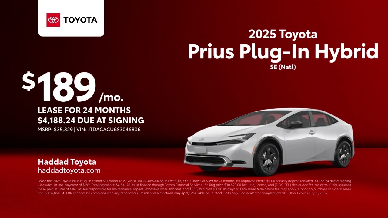 Toyota Prius Plug-In Hybrid 06/30/2025 5739433 discover your new Toyota right now at Hadad Toyota come see the latest lease offer on a 2025 Toyota Prius plug-in hybrid the search is over visit us today at Hadad Toyota [Music] Electric CarsElectric VehiclesEVHybridHybridsPlug-in HybridsPlugInpriusToyotaRelated Posts Mitsubishi reveals refreshed Outlander PHEV with more range ahead of Montreal show January 14, 2026 Hybrid and electric vehicles rev up second-hand market January 14, 2026 Why Did Stellantis Stops Selling Jeep Plug In Hybrids January 13, 2026 2025 Mazda CX-90 Plug-in Hybrid Prices, Reviews, and Pictures January 13, 2026 Europe Hybrid Cars Market Size, Share & Growth Report, 2033 January 13, 2026 2027 Volvo XC60 Hybrid Review, Pricing, and Specs January 13, 2026