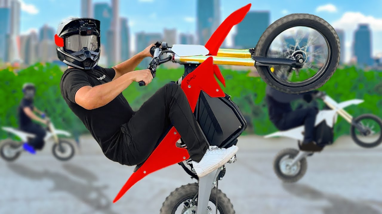 [Music] This is the newest, cheapest mini dirt bike. And we’re going to the biggest Suron ride out ever. That’s three superlatives. But no fancy words can disguise the hooliganism in this video. I’m assembling the new RTR Light that just released today on Monster Rides. The most popular mini dirt bike in the world, the RTR, now has a light version that is almost too good to be true. I also have the unreleased red RTR light. As of now, you can only get the white RTR light, but nothing is stopping you from throwing on red plastics because the RTR and the RTR Lite are almost identical with only a few key differences. Lining them up, it’s impossible to tell which are the RTRS versus the RTR lights. The biggest difference isn’t even visible. It’s the price. The new RTR Light is $1,000 less than the RTR at $2,199. You get the same frame, same geometry, same wheels, brakes, display, and plastics. The 72vt RTR pushes 8 kW of power with a top speed of 55 mph. The new 60VT RTR Light pushes 5 kW of power with a top speed of 45 mph. And worthy of its name, the RTR Light is 10 lb lighter than the RTR. The easiest way to tell the models apart are the stickers. And the RTR has black capped adjustable suspension, whereas the RTR Light has a red capped non-adjustable suspension. Both the RTR and RTR Light come with exclusive gold forks only from Monster Rides. Strap in. This test ride goes a little sideways and the Mega Ride might be my last. We got raw stunts on the new RTR light red edition unreleased. Jim on the white 72V RTR. Let me see how these goggles match. Ooh, white on white. White on white. Zappy on his 72V RTR. Parker Pitman on my 72vt RTR. It’s my first ride on the RTR light in America. Let’s line up. Race on the green. Jim’s got the modified high torque motor. Raw is on the light. Parker’s on the 72 volt. I’m on the light. Zappy’s on the 72 volt. Go. So, that’s the 72 volt. That’s the modified motor. Another 72 volt up there. And RAW and I on the lights. I’m going 45 mph. So is RAW. The top speed on the 72 volt RTR is 55 mph. Raw and I keeping up on the lights. You don’t need the most expensive bike, the fastest bike to ride with people. Oh, we’re going into the dirt. Going up on the lights. No problem. The lights can hang. The lights can hang. Let’s go, RGR. Hey. Oh, I got it on the light. Oh, without like you know how you got on the board