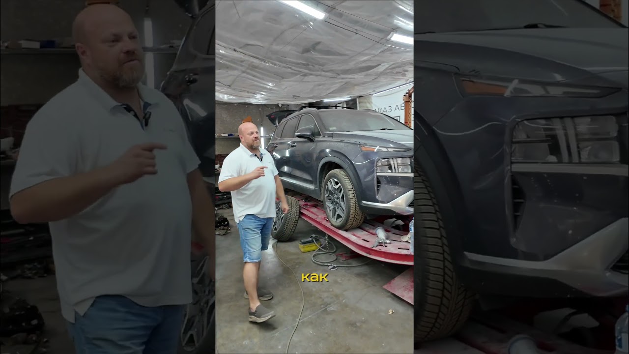 пришёл к нам Hyundai Santa Fe 1.6 Гибрид. И не просто гибрид, а плагин GR- это машина с аккумуляторной батареей, которая заряжается от сети и может ездить как на электротяге, так и на топливе. Данная машина у нас пришла с повреждением задней части. И вот мы уже сделали дефектовку на неё, заказали запчасти. И теперь можем посмотреть, как происходит восстановление задней части и установка запчастей. Здесь уже восстановление геометрии гела выполнил. На данной машине мы уже высверли заднюю часть, то есть была демонтирована полка, потому что полку мы купили новую, абсолютно новую официалов, и поставим её на место старой полки. Здесь был деформирован пол, который тоже восстановили уже, и скоро будем ставить заднюю полку, так как геометрию и дверь на автомобиль уже поставлены. Следующим этапом у нас было также повреждение балки задней. Мы будем менять или уже поменяли заднюю балку. Восстановим рычаги, глушитель, и машина в очень скором времени будет готова. [музыка] Yeah.