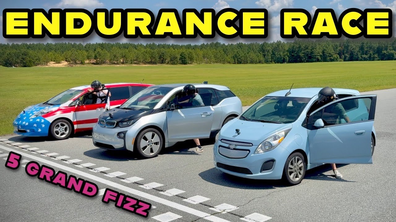 $5,000 Electric Car Endurance Race! 24 Minutes Of Le Maybe – BMW i3 vs Chevy Spark EV vs Nissan LEAF