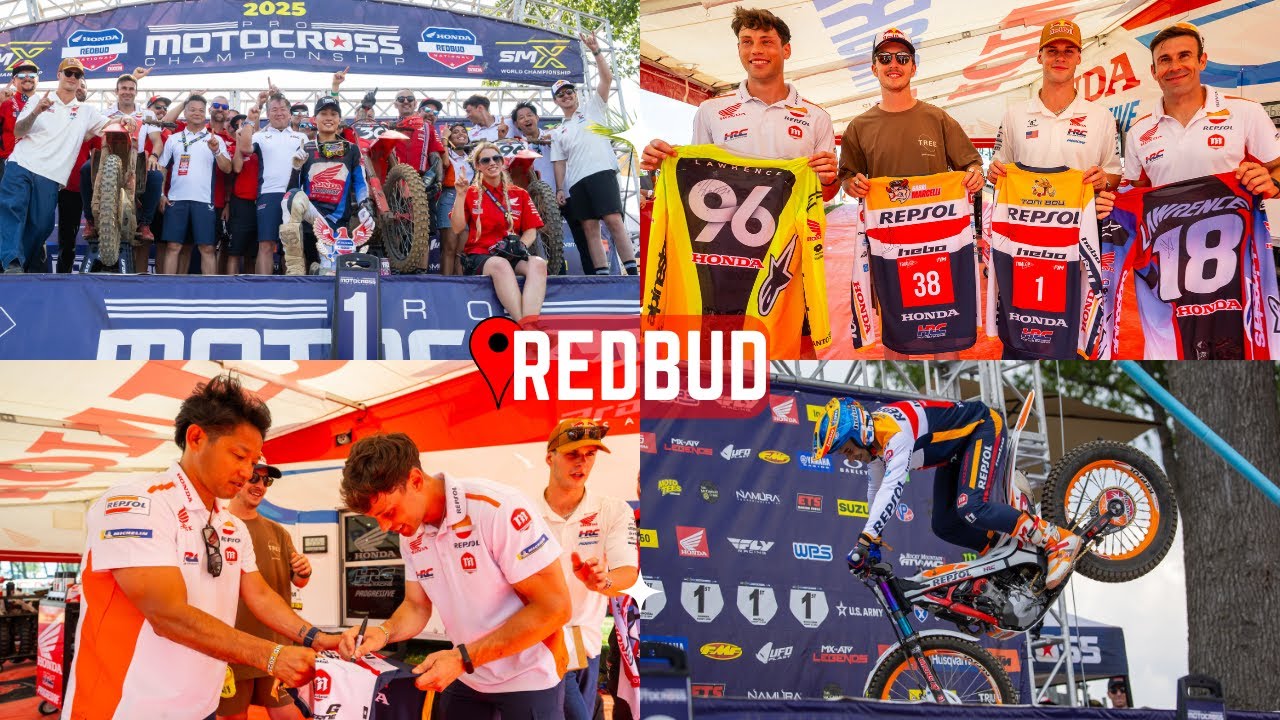 Honda’s globally dominant trials duo—37-time FIM World Champion Toni Bou and Repsol Honda teammate Gabriel Marcelli—were on hand at RedBud. Bou served as the event’s Grand Marshal, appearing on the podium during the opening ceremony and trophy presentation. In addition, the Spanish duo put on a pair of riding exhibitions on a specially designed course, showcasing their incredible balance and technical skill in front of the motocross crowd. This coming weekend, Bou and Marcelli will compete aboard their factory HRC Montesa Cota machines at the U.S. round of the TrialGP World Championship, in Exeter, Rhode Island.