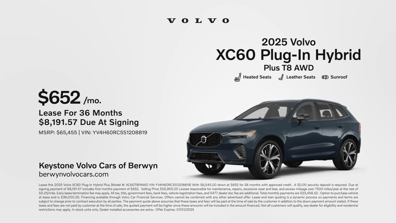 Volvo XC60 Plug-In Hybrid 07/04/2025 5764732 Discover your new Volvo right now at Keystone Volvo Cars of Berwin. Come lease a 2025 Volvo XC60 plug-in hybrid for 652 per month. The search is over. Visit us today at Keystone Volvo Cars of Berwin. Electric CarsElectric VehiclesEVHybridHybridsPlug-in HybridsPlug-in Hybrids VehiclesPlugInvolvoXC60Related Posts PHEVs Pollute Worse Than Gas Cars If They Aren’t Charged Up January 13, 2026 Volkswagen Reveals Flagship Luxury ID. Era 9X PHEV SUV In China January 12, 2026 Stellantis Pivots From PHEVs to Hybrids and EREVs in North America January 12, 2026 Car giant swings the axe on PHEVs January 12, 2026 “These 5 Plug-In Hybrids Make EVs Look Complicated” January 12, 2026 Everyone’s ignoring this used luxury hybrid—but they shouldn’t January 12, 2026