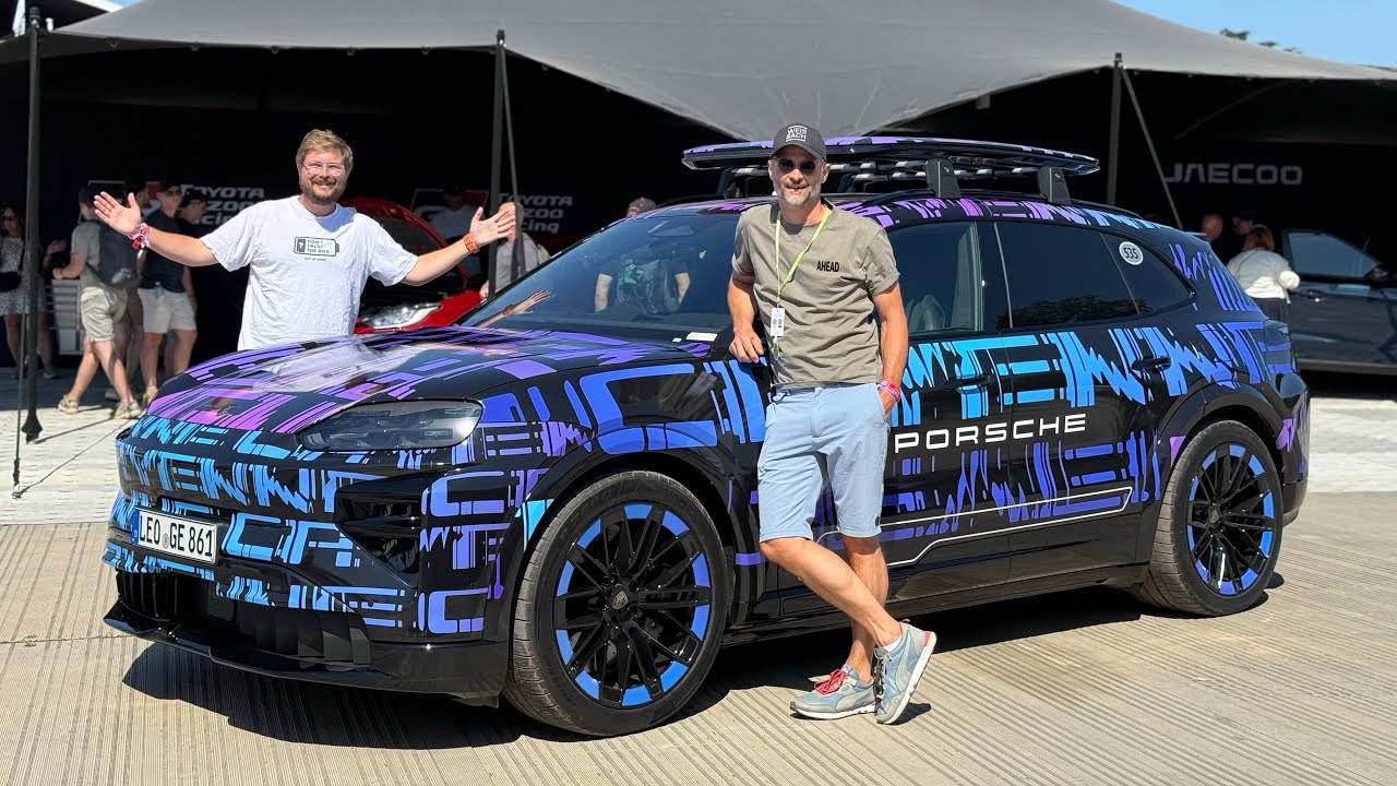 to another out ofspec reviews video. You join me yet again at the Goodwood Festival of Speed and I am joined by the new E4 generation Porsche Cayenne Electric behind me. Now, Porsche is going to be selling the new electric Cayenne alongside the E3, the combustion and plug-in hybrid versions, but I really want to dig into the new fourth generation right here. Now, we’re going to be meeting with my buddy Mike. You may remember him from a few videos. We’ve gone on adventures driving from Stoutgart to Istanbul, setting the range record in TYON and many other things along the way together. And Mike is really responsible for telling the world about Porsche electric cars. And he’s become a friend over the years uh because he’s always wanted to push what electric cars can do and really showcase even beyond TYON at the time what EVs are capable of. Well, now he’s got a new vehicle to tell stories with and his team. And we can’t say too much about it, but Mike’s going to tell us everything he can about the new fourth generation electric Cayenne. And I’m just excited to ask him about it. I want to know how good of a road tripper it’s going to be. I want to know how performancey it’s going to be and even some off-road stuff as well. We’re going to be getting into it on this episode. So, join me and Mike in the next clip where we run through everything we can tell you about the new E4 Cayenne. And here’s Mike. He’s going to pull it out so we can get the thumbnail. So, this will be the first time I can show you underway what it looks like. You can see he’s got all these covers so you can’t see the interior. He’s I asked him to park it with parking lights and in low suspension. So, he’s adjusting some settings, but it’ll be really cool to see this come out here and uh be in the sunlight cuz I think they did such a nice job on the design and obviously it’s still camoed, but I just think it looks absolutely amazing. Uh I am so excited for this car. This is a true performance electric SUV. I can already tell. Uh, I’m sure there will be some issues. I don’t think it’s going to have dog mode. I think it’s going to be lacking some of the software that you and I would expect from something like this. But in general, the performance and driving character should be really, really top-notch. Oh, you even make some noises coming underneath. How about that? And we’ve got rear steer happening right there. Super cool. Yeah, particularly excited for this one. You guys join me with my good friend Mike Vincott. How’s it going? Good. So, I am with you again. We’re not doing a range drive this time. No, we’re not. Because if you guys want to go and see maybe the worst day of our lives, we did the longest distance achieved in a TYON. Yes. To the state. 750 km and a bag of beef jerky. Yeah, we had the beef. Oh, it smelled so bad in there. It was a rough day. Yeah. Uh, so I’m here specifically to talk to you about the E4 Cayenne, and I want to get into that in a second. But there’s another car here that’s near and dear to our heart, and that is TYON Turbo GT. You’ve been kind enough to let me go on the Autobon and the Nurburg Ring with this car, which is crazy of you to let me do that. Um, why do you see how quickly we were going? We set some lap records there unofficially. Well, it’s the Autobon, so the car is designed for that. It’s supposed to do that. It can do it. So, we need somebody to do it. That’s such a Porsche response. I love it. This is the king of driving fast and charging fast. It’s the road trip monster. Agreed. It is. Yeah. So, this is a crazy wrap that you have on this car, but you were mentioning it’s also factory. What’s going on here? Well, this is actually a configuration that you can set up for yourself in the configurator on Porsche.com. That’s what our colleagues from Porsche England did when they ordered their first TYON GT because it’s a right-hand car drive. Yeah, that’s right. It’s not even a German spec car. So, this came from car for the UK. It has been featured in Top Gear already. Oh, amazing. Beating some other cars. I don’t want to say names. Um, yeah. And it’s we call it the Zebra internally. I love it. I think it’s so cool. So, you can spec this right from the factory. It’s an original spec. Everybody can have a car like this. It’s almost prototypy. It’s really cool. It is in a way. Yeah. Yeah. I really like it. So, you’ve done a lot with Turbo GT, I think, even beyond just the car itself, but demystifying electric car myths. like this car has proven to people that electric performance, just TYON in general, is is real and it’s serious. Maybe you can talk about some of your goals there. Well, ultimately, we’ve done so many road trips because we wanted to showcase that if you go on a long trip and you are a normal person and you take breaks, you’re not quicker in a combustion engine car anymore. The TYON is as quick because the the the time it requires to recharge is no longer than 80 minutes, maybe sometimes even 12 minutes if you want to go to 65% to push it really hard. the way to drive it if you have the right infrastructure. If you go to the south of Europe, you might end up going to 80 because you need some buffer. But ultimately, you don’t lose any time because one of the arguments that antie people sometimes have is I can’t take this car on vacation because it takes me 1 hour longer. Like, okay, fair enough. But with this car, I challenge you, it’s not taking any longer. If you have kids, if you need to have your normal comfort brakes, it’s the same speed. I mean, unofficially, if you want to get from New York to LA the fastest, this is the choice. The rear wheel drive version. Exactly. Unofficially. Unofficially. Yes. We would never support that. Of course not. Uh, but this is crazy. So, this is going to be, you know, I hope take TYON insane road tripping, you know, sort 