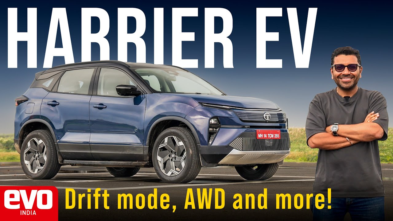 This is the Tata Harrier EV and it’s the first Indian car to get drift mode. [Music] What a lo drift mode. Nothing honestly is happening. What actually is happening is every time the rear starts to overtate which is goes sideways the ESP cuts in. Now the Tata guys said that ESP is not fully off because they want to have some sort of safety net. They don’t want idiots doing well what I was trying to do. But honestly why call it drift mode? Because this is not drifting. Maybe on gravel it might and when we went on the off-road course the tail was sliding around a bit in those off-road modes but here with the drift mode there’s no driftings happening. Now, the reason why it gets this so-called drift mode is because the drive goes not to the front wheels, but to the rear wheels. The Harrier EV is natively rear wheel drive, which in effect makes it superior to the Ice Harrier, which is only front-wheel drive. And that’s not it. The Harrier EV also gets the option of all-wheel drive. QWD means quadwheel drive. That is marketing speak for all-wheel drive. And thanks to electric propulsion, all-wheel drive is back in Tata Motors’ portfolio. Moving from frontwheel drive to rear wheel drive means a complete re-engineering of the platform. This is still called the Harrier, but in effect, this could be an all new car because the driving is completely different. The interiors are similar to the Ice Harrier, but you have different colors. So, the Stealth has got an all black interior. The only real difference is this screen 14.53 in. This is a Samsung Neo QLED screen. The first time it is being used in an automotive application. It is powered by Harmon. The electrical architecture obviously an active. Acti.ev architecture with Snapdragon’s digital platform with advanced OTAA capabilities. It’s got JBL’s black speakers, 10 speakers, also Dolby Atmos. It sounds really good. The drive mode selector, well, it’s similar to the Ice Harrier, but it’s similarly fiddly to use just like the Heist Harrier. Multiple drive modes. So, you get the snow grass, mud, rods, sand, rock crawl, and a custom mode. This button here, eco. The rocket like button that is for the boost mode. The running button that is the sport mode. And also, you have the automatic parking. In fact, on the key now, this is a new key. This is the new key. It also has a summon mode. So, you can lock the car and then you can summon it if you’d like, which honestly speaking, it might sound like a gimmick, but I think it’s actually a very practical feature. If you park it in a really tight parking spot, don’t have to worry about somebody else parking close to you and you can’t open the doors. You summon the car. There’s a weird problem though, and that is these front seats, electrically operated, but they don’t slide far back enough. So, my knees are bent. Normally, I like to get the steering wheel nice and close and my feet a little outstretched, but I can’t. And this is kind of cramped. Even when I’m getting in and out, my knees, it fouls with the steering column. Now, this is unique to the EV. The Ice Harrier has no problem in terms of the driver seat position. The passenger seat moves further back, but the driver’s seat, it strangely doesn’t. And this is at the lowest height setting also. Weird. [Music] There’s a completely flat floor, no transmission tunnel, and that tells you this is a new floor plan. So now this is easier for the rear seat passengers also, the guy sitting in the center. And as you can see, the under thigh support is actually pretty good. You tuck your toes under the front seat, you get decent under thigh support. This is actually one of the nicer electric cars to be seated in. Also, the seat backs, the headrests have got these wings. Headroom is also good. I got some this is what 3 4 in of free headroom. You obviously have your panoramic sunroof. So, this is actually pretty good. All versions get a 235 bhp PSM motor on the rear axle. The QWD version adds a 156 bhp motor on the front axle. So for the QWD version, you get a total system output of 304 bhp and 504 Newton m of torque, which is best in class amongst any Indian car. Forget ICE or EV. 0 to 100 in a claimed 6.3 seconds and top speed limited to 180 km/h. Now the battery packs. The base versions get a 65 kWh battery pack and the all-wheel drive version gets a 75 kWh battery pack. Now this is the same LFP batteries with the same cylindrical cells as the rest of the Tata EV range. But Tata’s engineers say they have unlocked 1.5C charging. Earlier it was 1.2C. And how does that help you? In 15 minutes you get 250 km of range. The claimed range for the all-wheel drive version is 622 km. That’s on the MIDC cycle, not the WLTP cycle. But Tata Motor says in the real world, you should get between 460 and 490 km of range. Obviously, not when you’re using boost mode and sending this. Now, crucially, you get a lifetime battery warranty with unlimited kilometers. That is now offered over the entire Tata EV range. And Tata’s marketing people, they say that the sales pickup for the EV range has increased after that lifetime warranty. In fact, they are confident that the Nexon EV will go back to being India’s bestselling electric car. Now, in terms of dimensions, the one crucial aspect is the wheelbase. 2741 mm is identical to the diesel Harrier. Of course, weight is not identical. The EV with the all-wheel drive that weighs 2,335 kilos, 2.3 tons. And when laden, it has a 50/50 weight distribution just like a BMW. So, you get a frunk. On the all-wheel drive version, it is 35 L. And on the rear wheel drive version, you get a bigger 67 L franc, five-star bhat endcap crash safety rating. Tata Motors is committed to making safe cars. In fact, this has seven airbags including a knee airbag. The rear suspension is all new. For the first time on the Harrier, you get multi-link rear suspension. The Ice Harrier, the diesel Harrier, has got a 