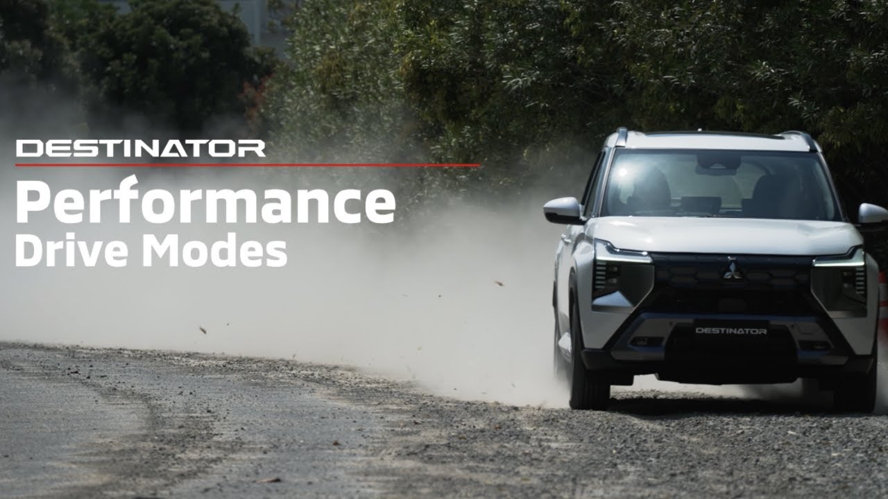 [Music] The Mitsubishi Destinator features five drive modes inherited from the Lancer Evolution 7 in its WRC winning performance technologies. These innovative drive modes have become synonymous with Mitsubishi Motors sports heritage. These drive modes deliver unparalleled performance, confidence, and peace of mind on a wide range of road terrains. [Music] Normal mode is optimized for driving on dry, paved roads. It prioritizes both driving performance and fuel efficiency. [Music] Wet mode offers high traction performance on wet or flooded roads. Precise control of the accelerator response allows for safe driving even on slippery road surfaces. Derived from a challenging road surface found in the WRC World Rally Championship. Gravel mode delivers stable grip on dry, slippery, unpaved roads with small pebbles and stones. Tarmac, another frequently used term in WRC and within Mitsubishi Motors, refers to a specific road surface characterized by paved conditions that provide the highest grip, acceleration, and steering control, particularly in navigating sharp corners. And mud mode, this mode boosts driving performance on muddy, rough roads by minimizing slippage and improving traction. [Music] Drive your ambition. Mitsubishi Motors.