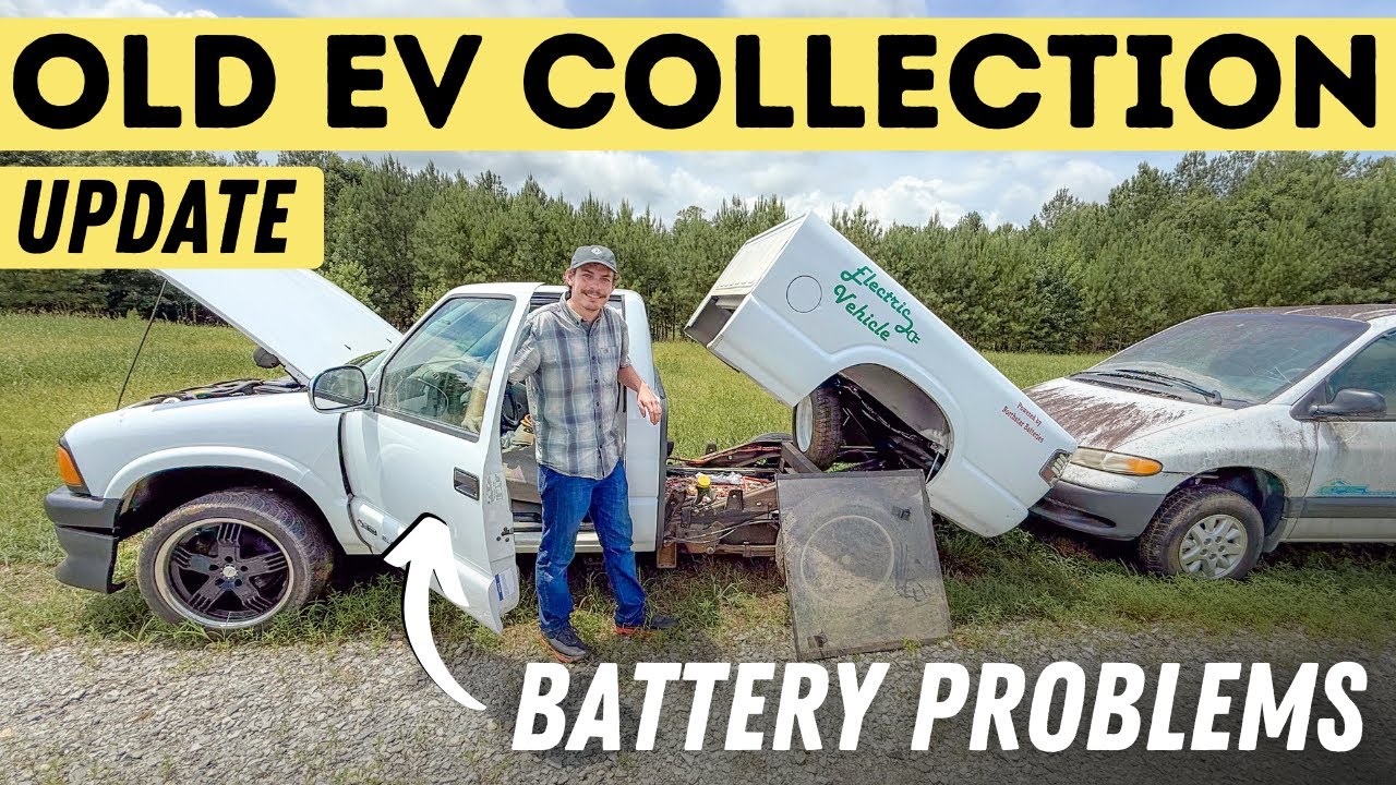 Alex, we are in North Carolina. Indeed. So, we for those of you who remember or maybe don’t remember, um this amazing person, Bonnie, donated her husband’s sort of ‘9s and 2000s carb era electric car collection to us. Yep. And so, we have 12 electric cars. Um, let’s see if I I think it’s maybe 10, 9, 10, 11, something like that. Couple motorcycles, too. Yep. So, a good size fleet of, you know, S10 electric, Ranger electric, RAV 4 EV, a Dodge Epic van, which the coolest of the bunch. And it’s been a couple months since we’ve done an update on all those cars. Yep. Exactly. But the good news is, you can show everyone in the back. We’ve got all the diagnostic equipment for This isn’t all of it. This is just That’s just a couple of them. Yeah, we’ve got a room full basically of stuff. Uh we’ve got chargers, panel chargers, epic van DC chargers from Loheed Martin, like one of two ever made. I don’t know. Yeah, who knows how many are left. And um in this video, we are basically showing you what’s up with the cars and digging into them a little bit more. This is going to be a multi-year process to get all these running. Bonnie’s husband uh made some YouTube videos about these cars back in the day. Yep. And he had a couple that were like running at the time or pretty close to running. And what we’re going to do now is see if we can get them to turn on. Yeah. I mean, it seems like at least two of them were running when they were parked, you know, probably a year and a half to two years ago. Yeah. So, we’re here at the out ofspec office in North Carolina, which is where we’ve had all the cars transported to. Yep. And uh they’re basically sitting track side. So, if you look ahead here, Alex, you can show everyone. Straight ahead is the racetrack that we operate out of. And then if you look to the left, you’ll see the Leaf Limo. We have a whole video on that car that Alex put a second battery in that one. It’s over there um for a multitude of reasons. But then over here are all of Bonnie’s cars and we need to figure out a way to protect them from rain and elements and um we’re going to have them come and get washed and cleaned up as well because some of them are just growing stuff in them. Yeah. So, they need to get professionally cleaned. But the two vehicles we’re going to focus on in this update is the the spicy S10, the one that’s been modified and also is an LFP conversion, right? Lithium iron phosphate pack with still paddle charging. Uh no, it’s converted to J1772. So as an a different onboard charger with J1772 to charge the batteries. So we’re going to look at that one. And then we’re also going to look at the Transit Connect, the Azure Dynamics one, right? the blue one here specifically, not the white one back. Right. What’s up with the white one? The white one? Don’t know. I suspect that he bought it as sort of a parts vehicle, but um yeah, I mean it seems like it’s been sitting for a long time, and it’s uh I haven’t even looked under the hood of it cuz we were missing the key for a long time. We actually found it when uh when we went and picked that up here just a couple days ago. So, I think we have everything now, right? Yeah, I think we have pretty much everything except for the step fan, right? The big one. Yeah, the big step van. Selectria Force. The Selectria city van. City van. The Force was the other thing. The Force is the That’s what I’ve got. I’ve got the Force. It’s a an electric geometro basically. Um, dude, the Epic van is not looking so epic at the moment. I’ll steal the camera so I can show everyone. So, we’ve got the S10 here. Let me put this in the wide view. There we go. So, this thing is really the prized possession, and it’s looking honestly pretty good. Need to uh need to make sure we don’t get too much water intrusion into these. Yeah, we need to figure out a way to get the windows up on this one, but it’s actually missing the window cranks. Yeah, it’s missing the window cranks. Maybe a drill. Yeah, the I think the other one has window cranks in it, so we might be able to steal those and Okay, cool. Yeah, that’s sort of the parts one down there. This is the Epic van. One of just a handful known to exist. There’s three left that are known to exist. I know that the Biata collection in Colorado has one and I guess there’s another one someplace and then this one is the third one that’s known to exist. There’s a fourth one that rumored to be somewhere in California maybe. Okay, interesting. So, it’s the electric powered inter urban commuter. This is the coolest thing. Um, we’ve also got the battery tray in there, Alex. So, when we convert it, we should be able to uh, you know, harvest a lot of these components to try to get this one running. This is going to be a hell of a project, though. I really wonder what happened to all the battery modules on this one, but they’re seemingly gone at this point. So, I don’t know if they got recycled or trashed or whatever, but it does look like we’ve got all or most of the internal uh components for the battery, which is which is important. That’s that’s definitely stuff that we need. Yeah. And it’s also important to mention just how organized uh the owner of the collection was, Bonnie’s husband. Yeah. He had everything, you know, kind of organized in totes and boxes and stuff. User manuals. Yeah. We found all of the manuals for for everything, including this. This was still in the factory binder for the whole service manual and everything. And there’s like handwritten notes and uh printouts of email exchanges and all sorts of stuff. Yeah, this guy was insanely great at documenting. Yeah, he kept track of everything. So, that will make things a lot easier for us. Yeah, hopefully. So, and then we’ve got just over here, we’ve got the Ranger EV. Uh, that needs a battery, right? We don’t even have the tray for it. Yea