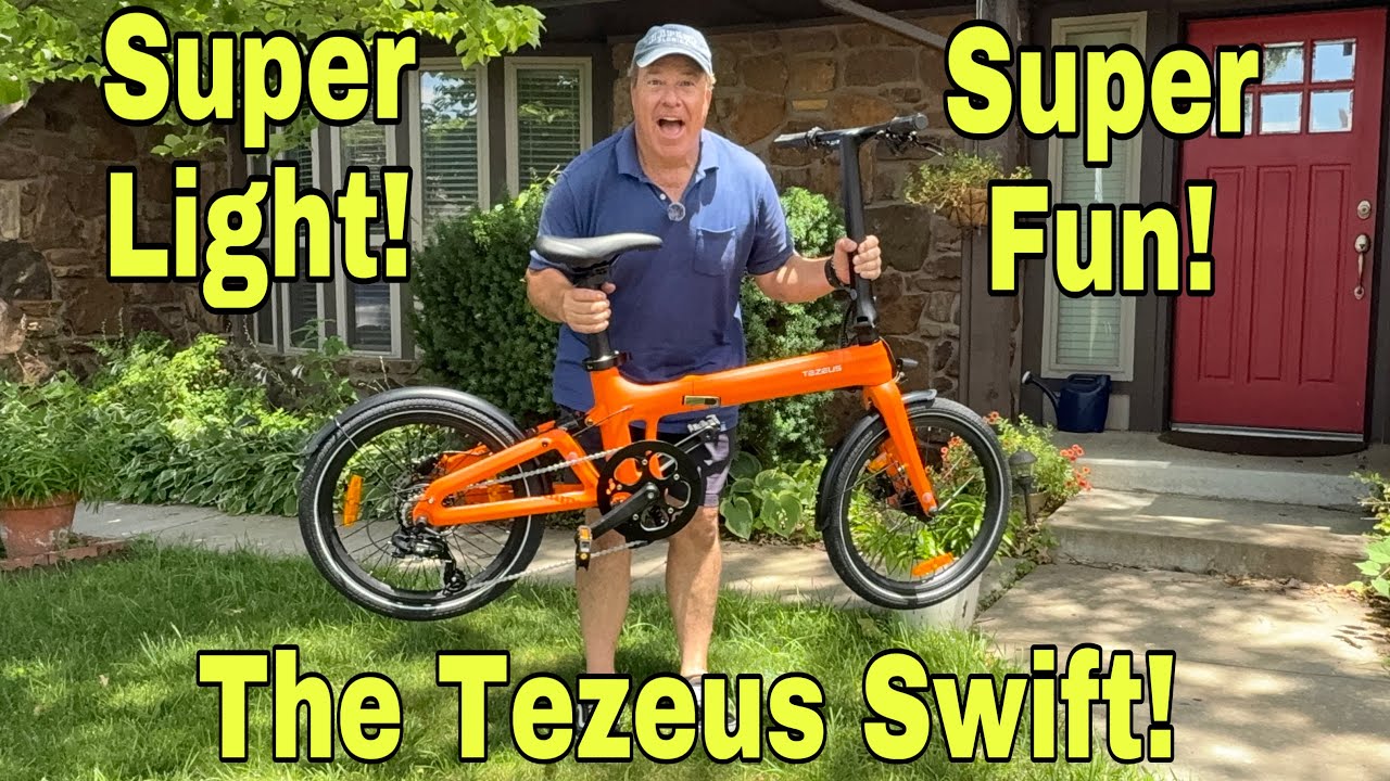 she likes to stop this thing is silent super silent but she does like to go this could be the lightest electric bike I have ever reviewed hey everybody Monkey Wrench Mike here this is the Tasus Ortiz Swift it’s a carbon frame foldable electric bike that has a 250 W motor a 20 mph top speed 30 Newton meters of torque a 36V battery that is underneath the seat right there it will get you 37 mi of range there is a rear suspension as you can see right here and a very cool integrated screen which is right here i even have the plastic still on it so what we’re going to do in this video we’re going to give it some power we’re going to take it for a spin and then like we always do we’re going to grade it on fit form and function first things first I want to show you just how light this thing is and give you a little size proportion i’m 5’9 this comes up to it’s way below my hip we have tiny little tires they are very very thin as well as you can see but look at this 36 lb that’s exactly what this thing weighs right here and everything folds on it as well you can fold the pedals okay they’re going to fold like that you have a latch on this side right here that will release and it will allow the front of the bike to fold in just like this you can put the kickstand up you can fold it like this your handlebar will come down just like this and fold like that and look 36 lbs you’re ready to go so let’s go ride this thing yep this is an electric bike you can throw in the trunk of your car look at this thing 36 lb that’s like two sacks of dog food right there and it goes together so easy all of the latches just open up and close to securely keep the pieces intact you can push this your pedal goes back to full put your kickstand down now we are ready to take it for a ride all right very quickly this is what the uh screen looks like you can see the battery is full we’re going zero kilometers per hour so let me change this if you hold the M button which is just right over here you can get into the trip you can change the units so let’s go down we’ll go to unit hit the M button again go down miles per hour there we go okay you can also add a pin if you want to little privacy you don’t want anybody being able to just jump on this and write it off that’s okay but there we go we’re now on miles per hour we have one 2 3 4 five levels of pedal assist and a top speed like I said of 20 m an hour so let’s start off on two i love this i love the fact that it’s integrated and let’s just see what this little bike is like and little is a good word for it because it is teeny tiny these are 20-in tires we have a shifting over here we have our two brakes right here and you’ll notice something there isn’t a thumb drive you have to pedal with this so let’s just take off i’m not going to do torqueill i’m not going to go down the suspension test because I don’t have a front suspension and I have one behind me which is fine but this is a completely different way of thinking for electric bikes this is a Shimano 7-speed gear system we have Shimano brakes which are nice they are hydraulic and this thing is quiet you can feel how light it is 36 lbs that’s all let’s do some shifting here we go feel like I need to raise the seat a little bit i love the fact that they hid the battery in the seat post that is very nice thinking we’re cruising at 9 right now all these gigantic trucks and my little bitty electric bike but this is an urban bike this is so you can put it in your closet in your apartment if you want to throw it in the trunk of your car you can do that as well there’s a gear change there’s another one oh gosh this is going to make me work okay let’s do something as we come down here let’s go ahead and raise the seat a little bit i’ll show you just how easy it is hit the brakes very hard she likes to stop she really likes to stop okay oh I didn’t bring the key did I what’s cool about this is there’s actually a key because this is your battery you don’t want anybody running off with this the key locks the seat into position or this little locking system right here the key will undo that i didn’t bring the key with me so I’m kind of stuck right here that’s okay no biggie we’re just going to take it for a spin talk about how fun it is and how quiet this thing is silent super silent and I like the seat the seat seems to be a little bit wider than some of the other seats i’ve seen a seen a trend in seats let’s go up in pedal assist as we’re talking they’re getting very pretty that’s a good word for it so the seats are very pretty but they’re not so comfortable anymore this one is a comfortable seat which is great i’m just kind of going up this hill at my own pace 8 miles an hour no issues at all and this is kind of marked up your uh gear system right here i think I am in fourth gear let’s see if we can go up there we go that makes it a little bit easier man you really got to pedal on this to go anywhere it’s a small diameter if that makes sense you’re the pedals are kind of close to each other because it’s a smallalish bike we do have a lot of wind let’s just go down this way and see what she’s like shift shift shift now we’re going 13 14 15 now you can hear a little bit of the hum from the motor but she does like to go she’ll get up and go and look at how maneuverable this is look at this [Laughter] this is fun this is really really fun and once again it’s a very small bike yeah this is this is nice i do like the color the flat orange is beautiful it also comes in a blue color as well and the brakes look at that the rear brake locks up which is good the front one does not which is also good so let me get in the shade yeah this would be a great little bike for kids but they say that this will fit somebody you know 411 to 65 you can be very very tall because the uh battery under your seat goes way way way up and y