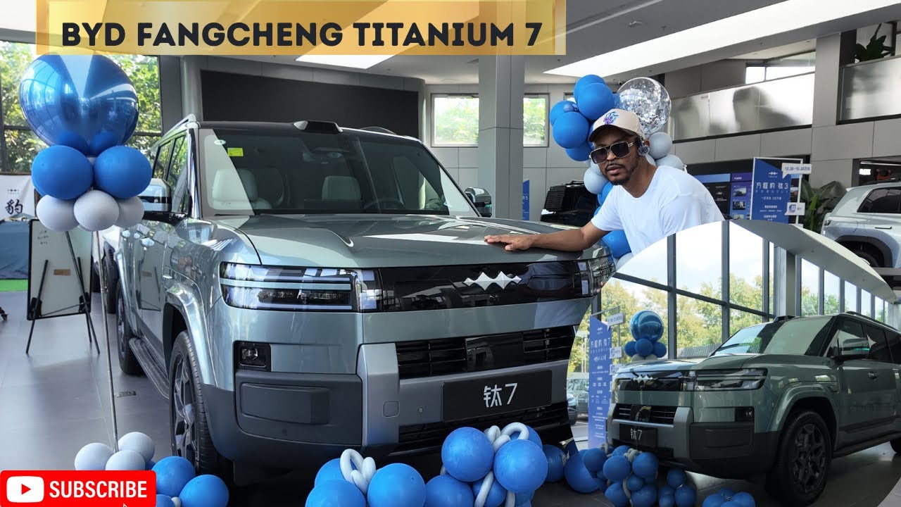 standing at 1,865 mm of height and 4,999 mm of length and also 1,995 mm wide and a wheelbase of 2,920 mm. Looking great and confident than your previous relationship right here is the Titanium. Guess what? The Thai 7. And this is an impressive car coming again from BYD subbrand function. And you may want to stick with me and let’s see how this car is. Actually, you know, with the successful sale of the BYD Thai 3, so many people actually complain like, “Oh, we want a bigger family car that can actually contain all of our family problems.” And Fang said, “Okay, now we got you covered.” So, they brought around guess what? The Tai 7. Now, come with me. Let’s see. Now, forget about all the balloons you seeing right here. Is because it’s a new car. It deserve the entrance. Now, let’s go. So, you’re seeing right massive how it is, guys. It’s looking like a defender. Okay, that’s on tuxedo. But guess what? Take a look at this. This is running on 20-in rim tires right here. Sitting so comfortably like your crush across the street. And guess what? This is a PHV, meaning is running on both fuel and electricity. And guys, the combined range of this car is 1,300 km. This is impressive. Now, let’s take a look at this. Do you see how boxy and shapy it is, guys? This is super impressive. You can hardly have cars that are boxy like this. And of course, then they are pretty. Now, take a look at this. When you come to the rear, you first of all have this Thank you. You have your little trunk right here. This is impressive. Just seem like the TA sound, right? But this is a little bit bigger. These guys this time around are not actually putting tires behind. They actually putting some trunk space for you to actually put some stuff. And talking about trunk space, guys, you may want to actually take a look at this here. You have, guess what? This is a 970 L space of trunk right here. And when you put this right down, you’re going to have 1,880 L of space. Meaning that even without putting these seats down, you can actually conveniently carry about eight bags, 50 kg of rice right here without actually any stress. This is impressive. And this car can actually do some pretty off-road stuff as well. You know what I’m saying? And of course coming with high technology right here. Take a look. Is this not impressive? And right here again, you have some of your stuffs. And because it’s a PHEV guys, you have your outlet for one 12vt 180 watt of electricity right there. That’s your 12vt 180 watt of electricity right there. And that’s not all. You also do have your outlet again right here. Now you have a 220 volt. Is this not impressive? That’s super super great from BY. Now this is heavy, man. This is really heavy. Now let’s take a look inside the car. You have no running board, so you just step like this. And it has guys some traditional handles. You have your HUD display right there. You have your scanner for autonomous driving, your purely impressive BYD styled kind of gauge and your digital cluster. Now you have a 15.6 in screen that sits right here purely for your entertainment and of course it’s floating. So you can actually do this for all your entertainment and of course your navigation and stuff. Whatever you want to do, you got to do it here. And again, you have some physical boardings on the steering which you can use to do a lot. And again, right here, you have this little physical buttons right here. And you have your two have your two 50 W max of wireless charging your your cup holders. And guess what? Right here to control your temperature on the car. You know what I’m saying? And guess what? You have this little bit of refrigerator right here, which can actually cool to -6° and of course can actually heat your whatever to around 50° centiggrade. That’s impressive. And this seat again are heating, massaging and ventilating all three in one. And right here guys, you have again your USB port and of course your fast charging. And you see this right here, you have actually three of this. And again, you have your 12vt 180 watt of power outage right here. When you slide this, this light turns off. And when you slide it off, it turns off. Okay? So when you want to do your makeup and your stuff like that, if you’re a lady or whoever, you know what I’m saying? So you can do that. And of course, you got to have your light. It also have an impressive panoramic sunroof that actually lights the cabin, which means that you’re not going to be driving the car and you feel like you’re in a box. And when you touch this, watch what happens. See that? And the way it opens is super cool because you can be driving and you’re going to have no air resistance. You can have fresh air coming from here while you’re driving. To show you how impressive your screen is, even though you have physical buttons right here, you can still actually touch them right here. And of course, you’re going to have your windows rolling down. You see that? That’s impressive. And you close them. And guess what, guys? Right here, you can put your glasses. So, you can take these glasses and you put them here. And you close it like that. And this car has an impressive autonomous driving system, which is coming from the BYD Pilot 300. This is super impressive. One thing again you got to know about the car that is super impressive is this car actually has a system that when you have a tire blowout you are going to have a suspension that can keep the wheel running for over 30 km at a speed of around 80 km per hour. I think this is super impressive. Is this not great? Which means that when your tire blow out, you ain’t got to be scared. You ain’t got to be worried. or so many other times, you know, so many accidents are caused by tires blow out and stuff like that and the car may even be rolling over because, you know, the car is going to maybe be lopsided and stuff like that. And sitting at a p