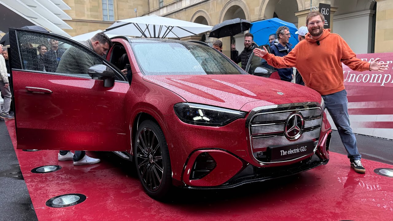 Thank you to our sponsors for today’s video, Eaton, Ayana, and Infy Power. Eaton is a one-stop shop for implementing reliable and innovative EV charging infrastructure at your site. Across all applications, Eaton’s EV charging infrastructure, hardware, and software gives you the scalability, flexibility, and intelligence you need to charge today and scale up tomorrow. Learn more at eaten.com/evci. Also, Ayana, North America’s premier charging network with unmatched commitment to elevating the customer experience. Ayana is opening America’s roads to all EVs, giving drivers the coverage they need, the reliability they deserve, and the amenities they crave. And Infy Power, the largest EV charger module provider with over 3 million power modules running reliably worldwide. Their latest G2 collection features ultra high power density and efficiency for EV charging and energy storage integration. Infy power, innovation for your power. Hello and welcome to a rainy day here in Munich. Behind me is the new Mercedes electric GLC. I have been so excited to bring this car to you because just a couple days ago, we recently filmed We’re in the middle of an auto show. We got to roll with it, folks. We just filmed the BMW i3, which is the first vehicle on BMW’s Noia Classa. And the EX-3 is a direct competitor to the new GLC. The entire IAA auto show seems to be EX-3 versus electric GLC. And at least on paper, it looks like BMW has absolutely crushed the new GLC in terms of range and charging and electrical architecture and more. However, in this video, I’m going to take you on a tour of the new electric GLC. We’re going to look in the front trunk, the rear trunk, the interior, the software. I’m going to show you a cutaway of the platform as well to look at the permanent magnet electric motors, talk about the clutch disconnect, talk about the charging performance, and you can then see how it stacks up against the EX-3 or other electric cars you may be interested in. This really feels like it’s going to be the big volume seller for Mercedes in terms of electric cars. So, it’s a super important one that we film this and bring this to you. Next time, Mercedes, maybe you could invite us to film it in a studio ahead of time instead of us getting rain poured us on us in the middle of the auto show. All good. We’re still going to get the video to you even though it’s a few days late. Well, guys, you’re going to have to deal with us on this one. It is rainy. It is crowded. And we are going to have fun cuz this is what auto shows are all about. So, new electric GLC. So excited for this one. This the combustion GLC outs sells pretty much any Mercedes worldwide. So you put in an electric drivetrain, it should be their bestselling electric vehicle. It’s not just any electric drivetrain, though. This is really Mercedes next generation passenger car stuff. Or maybe I should say like normal car stuff. Because in the background of the excitement around the GLC electric, the Mercedes AMG team is working on the most insane stuff. We’re talking 10C charging over a megawatt charging. We’re talking huge power and chassis and performance. So like the AMG Mercedes sound like are going to be charging monsters, range monsters. And they just broke about every long-distance electric car record you could think of. And I have a whole video coming with my friend Eva who’s responsible for the charging team here at Mercedes and uh from the technology perspective. And that will come in a few days. So, really stay tuned for the AMG EQXX deep dive program with um my friend Eva. That’ll be really fun. So, the specs on this are amazing, but keep in mind what AMG is working on makes this look so lame. Um what is the GLC Electric? So, let’s run around it really quick so you can see there’s people in there, so you’ll be able to peek in and get a sense of some of the size and and space as well as they close the door. All good. Come around this side. Um you can see the back of it really clearly here. And design-wise, well, everyone has eyes and everyone has an opinion. So, I of course will leave that all to you. Except my opinion is okay. It looks a little sad. That’s the only thing I can say. These little droopy things. It’s part of the new design language with Mercedes. I think it looks okay. It It’s fine. It’s just not particularly exciting. It still carries a little bit of the bubble from EQS, SUV, EQE, but I think it looks better than those, especially the front end. Um, we’ll talk about the lightup grill in a little bit, but I’m not 100% sure it’s as bad as everyone’s saying. I think it looks better in person. All right, let me show you inside the trunk because first thing I’m noticing and first thing I should mention is this vehicle is on air suspension, which is not on the EX-3, which means you can hit a button right in here and you can actually, well, it may not do it with people in there. Don’t know, might be disabled, but you can dump the rear suspension out. So, you can lower this loading height. Now, this is, I would say, an acceptable loading height to get into the back of the GLC for your luggage, although it is quite high. For example, as I’m standing, this vehicle is not lowered. Lucid gravity is down here. And we saw something else yesterday. Oh, the Kia PV5 van that was like next to my shin. Crazy. Still, for a GLC size vehicle, as expected, trunk space, nothing crazy, but totally more than usable. And you have a nice underfloor storage to store charging cables or bags. There’s also a front trunk as well, which I will show you. You can turn this floor into a complete flat load floor, which I really love. Um, so you can choose to have it, you know, in this raised position or in this lower position. And I think that’s a really nice option to have. Of course, you have this, you know, privacy shade that can come in as well. So, all in all, I think in terms of lu