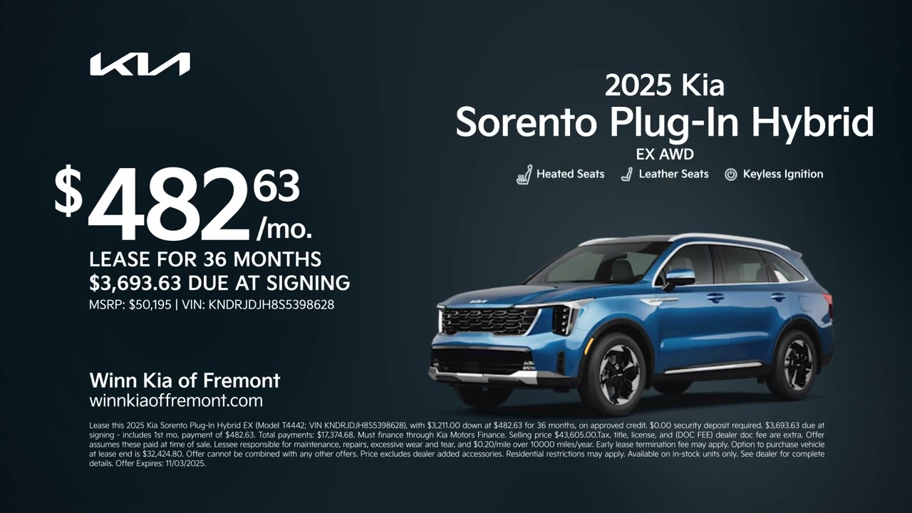 Kia Sorento Plug-In Hybrid 10/04/2025 6241847 Discover your new Kia right now at Win Kia of Fremont. Come lease a 2025 Kia Sto plug-in hybrid for 482 per month for 36 months. Now during Kia fall savings event, visit us today at Win Kia of Fremont. Electric CarsElectric VehiclesEVHybridHybridskiaPlug-in HybridsPlug-in Hybrids VehiclesPlugInSorentoRelated Posts The Everyday Hybrid That Finally Makes Electric Driving Easy January 12, 2026 The Calm, Clever Answer to Range Anxiety in 2026 January 11, 2026 Chinese firm launches hybrid EV with 1,000-mile range, 165 kW motor January 11, 2026 Buick Electra E7 EREV goes nearly 1,000 miles January 11, 2026 Buick Electra E7 EREV goes nearly 1,000 miles January 11, 2026 My Volvo PHEV Is Still Going Strong After 42,000 Miles January 11, 2026