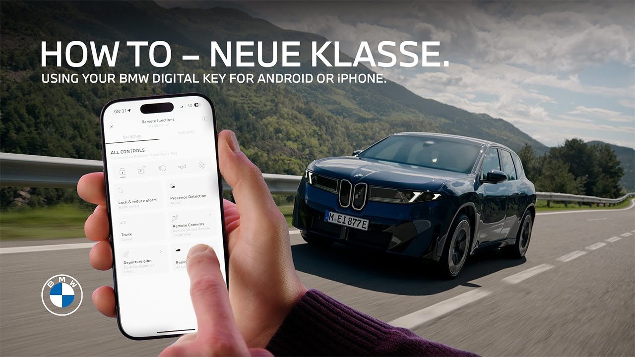 With the BMW Digital Key Plus, whether on an Apple iPhone and a connected Apple Watch or an Android smartphone and smartwatch not only are entering and starting your BMW as seamless and convenient as it gets. Also, the remote control and other comfort access features are more versatile and flexible than ever before. Let’s recap the basics first. Once the BMW Digital Key is set up to your vehicle and linked to your BMW ID, you can use it for the full welcome experience when you approach. The welcome light animation starts. On the all new BMW iX3 the flush door handles extend, and your BMW ID with your personal settings is activated in the vehicle automatically. As always, this works even with your smartphone in your pocket or using the smartwatch on your wrist. So what is the device with the BMW Digital Key is out of battery or doesn’t support Ultra Wideband transmission? At least five hours after the battery went flat, you can still use the BMW Digital Key to unlock the car by holding it to the door handle. Now, let me show you all the convenient things you can do with your BMW Digital Key Plus, when you take out the phone in close proximity of the car. The remote controls in the My BMW App, we know and love, expand. Now you can unlock or lock the car instantly. Open and close any or all of the windows. You can open the tailgate. And you can lock the car via the My BMW App and reduce the alarm. Meaning the interior motion and tilt sensors are deactivated as long as the car is locked. This comes in handy when trying to avoid unintentional alarms from going off. For example, when your BMW is parked on a garage lift or in a car wash. So when the vehicle is unlocked, you just get in and without taking out the device. You can just start the vehicle. If your smartphone is out of battery or if the Digital Key is installed on an NFC only device, you need to place it in the wireless charging tray to start the car. Oh, and whether a shared BMW Digital Key you’re using enables you to drive the car without limitations, or if it grants you restricted driving rights. That’s all part of the new sharing functionalities of the BMW Digital Key Plus. Watch our other how to video about it. As all of our how to videos, it will help you get the most out of your BMW.