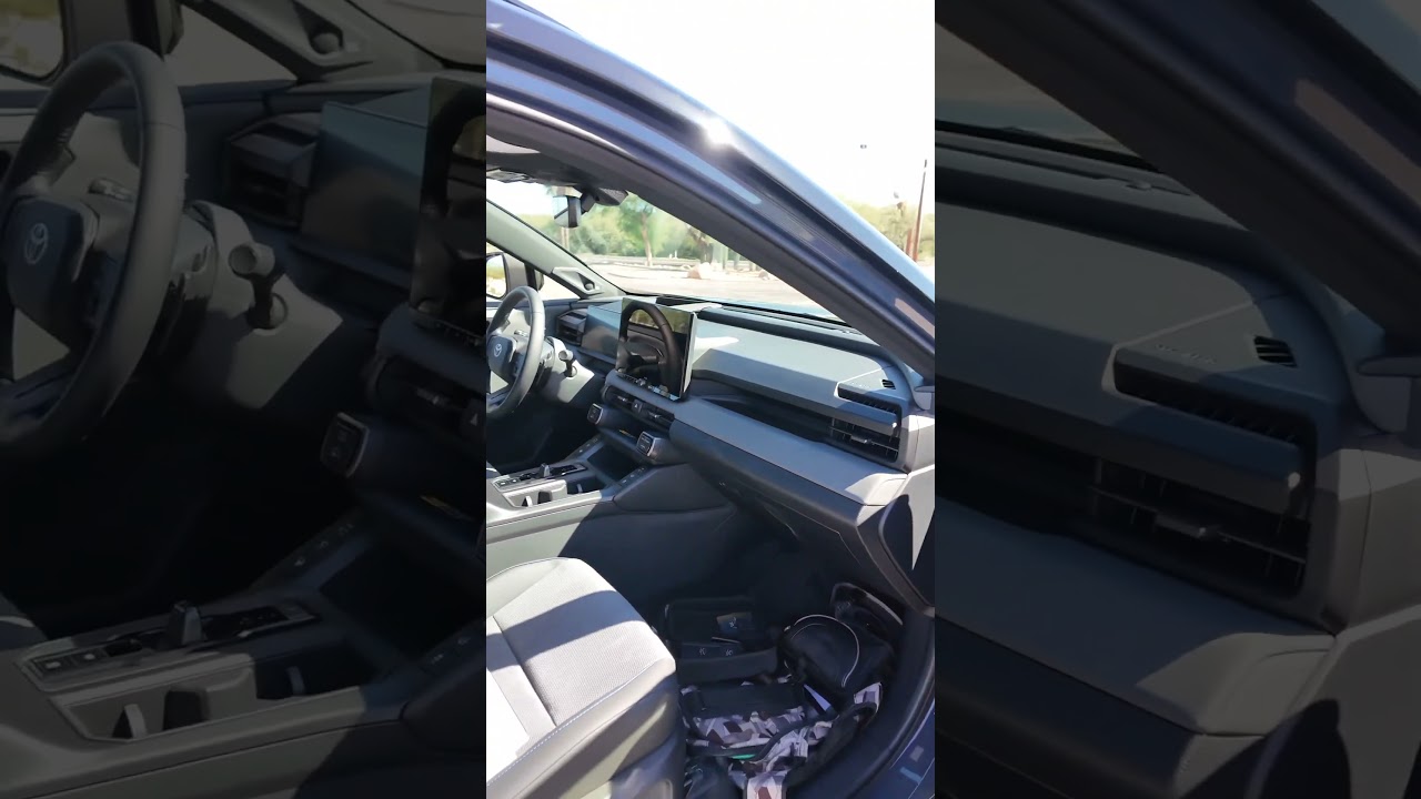 So, here is the all-new 2026 Toyota RAV 4. This one is an XSSE finished in Stormcloud. And this one is a plug-in hybrid with the all-wheel drive system. So, this makes 324 horsepower, which is pretty awesome. Fully electric driving capabilities with around a 50 mile range, and you’re going to be looking at closing out like 600 miles on a tank of gas. So, this is pretty sweet. XSSE is very sporty. Got the micro suede on the seats, blue stitching, lots of soft touch. The new multimedia screen works really well. I’m impressed with that. And the back seats are quite roomy. They recline. You got all the amenities. Got a full panoramic sunroof on this one. Really nice new styling. This car is all new in every way, but it looks great inside now. I’m very impressed with it. Drives great, too. Take a look at today’s full YouTube video on the newest RAV 4s. We’re checking out a bunch today here in Arizona with Toyota, but today’s video is all about the XSE. Let’s see what this one has to offer.