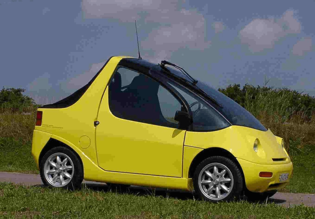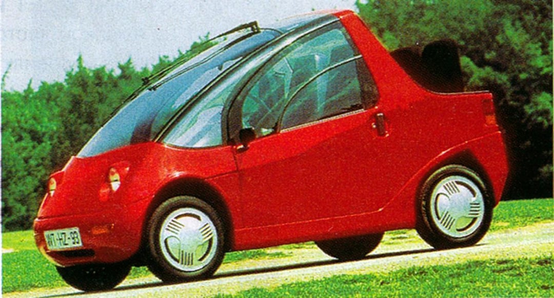 The two-seat microcar (with an occasional rear bench) used a tubular steel frame with an aluminum sandwich floor and GRP bodywork, powered by an AC induction motor rated at 12 kW (16.5 kW peak). Standard lead-gel traction batteries (14×12 V, about 10 kWh) yielded roughly 70 km real-world range and about 100 km/h top speed. It was sold as the open Buggy (zip-in doors) or the City with fixed doors and hardtop. Around 140-150 were completed.