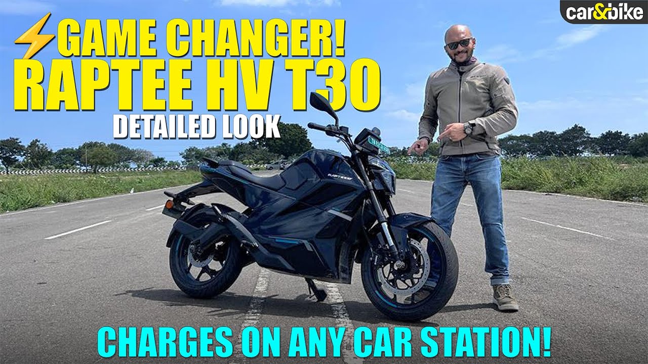 This is the new Rapi HV T30 electric motorcycle. Now, Rapi HV is a young Indian startup in the space of EVs. And this, the T30 is a brand’s first electric motorcycle. Now, as you can see, it looks sporty, but it’s not really positioned as a sport motorcycle. It’s more a urban commuter motorcycle with slightly performance to give you that thrill, that entertainment and of course practicality. Uh it has that uh upright riding stance so you don’t really need to crouch on. It’s not very aggressive in terms of ergonomics. Seat height is 790 mm so it will be easy for most riders I think and uh curb weight is 177 kgs. Now the output of the motor is uh 22 kW and uh peak torque is 70 Newton meters and it comes with a 5.3 kWh battery pack with a claimed IDC claimed range of 200 km on a single charge but of course you’ll have to use comfort mode there are three modes comfort power and sprint in comfort mode maximum claimed IDC range is 200 km now the Rapi HV T30 is priced at 2 lakh 39,000. The company says this is an electric alternative to your 250 to 300 cc motorcycles. But what the company says is it boasts of something which no other electric two-wheeler in India has right now which is the CCS2 charging system. What that does? It unlocks access to any conventional public car charger. Over 30,000 car chargers available, charging stations available right now in India. So you can use this bike on a conventional charging car charging port and use it to charge it. 20 to 80% charging time claimed is only 36 minutes. So that’s what the USB of this bike is. And it’s got an onboard 3.33 kW charger as well. with that on a conventional home charging 15 amp socket you can still charge it which is a claim charging time of 20 to 80% in just about an hour so that is the primary USB of the T30 is that your charging time is reduced drastically you have access to 30,000 more than 30,000 public charging stations the car chargers any electric car charger you can use to charge this motorcycle but at 2 lakh 39,000 rupees what do you think of the price, do let us know in the comments. It also has a 7in TFT screen. It’s got built-in navigation. It has those those uh that’s the built-in navigation. It it has the built-in navigation and uh it has three ride modes uh comfort, power and sprint with different performance. Three levels of regen and it gets standard dual channel ABS with 17in wheels. Suspension of course 37 mm upside down front fork rear monos with both ends giving you travel of about 110 mm. uh ground clearance is about 160 mm and this is totally IP67 rated so no problems water waiting which is what the company says up to 500 mm of water waiting capability this bike has what do you think of this made in India electric motorcycle the Rapi HV T30 at 2.39 lakh and with those kind of charging options do you think this could be a gamecher for anyone looking at going electric or looking to buy an electric motorcycle or would you be interested in something like this at that price point? Do let us know your thoughts in the comments. And of course, look out for a first ride review. We are riding this today, but our review will drop on the 12th of November. Look out for that when we give you our lowdown on the ride, handling, and everything about the Rapi HV T30. If you’ve liked this first look, leave a comment, leave your thoughts about this bike, and do consider sharing this ahead. Thank you so much for watching Car and Bike.