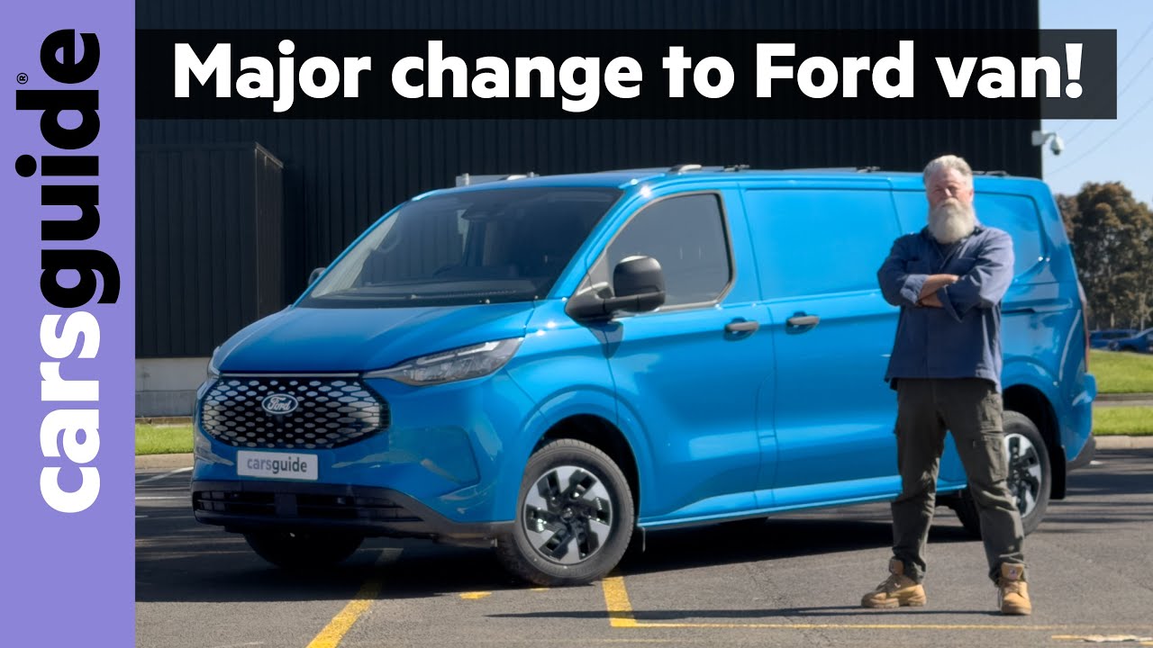 While some of the world’s car makers are reversing away from the concept of electrification at 100 mph, Ford is clearly not one of those because these are the most recent additions to the Australian Ford Transit custom lineup and they’re both electrified. This one is a pure battery electric vehicle. This one is a plug-in electric hybrid. Now, you could argue that commercial vehicles like this have got a lot more to gain and a lot less to lose from electrification. But while some of the car makers in the world say, “Well, do you really need an electric parcel van?” Ford’s actually saying, “Yeah, you do. You need two of them.” So, what’s the reality? [Music] This gets pretty complicated. So, for the full explanation of what’s what, check out the full written review at carsguide.com.au. So, here goes. Ford has produced not one but two electrified Transit Customs. There’s the pure electric version as well as a plug-in hybrid model. They’re both available in entry-level trend and ritia sport trim with the trend using the long wheelbase and the sport the short wheelbase for a shorter cargo area. The trend plug-in starts at 67,590 and the sport is 69,990. The fully electric trend is 77,590 and the EV Sport is $7990. If you’re buying the trend, you’ll get 16-in steel wheels, single zone climate control, a 13-in central info screen, full wireless connectivity, keyless entry and start, and wireless phone charging. Stump up for the sport, and the van gets 17in alloys, dual zone climate control, a 10-way powered driver’s seat, a body kit, stripes, and nicer cloth trim. [Music] Part of the Transit Customs appeal has always been its cool looks for a van. Anyway, the switch to electrification hasn’t changed that, although the Sport with its stripes and rear spoiler does look less like a trades work van. Inside, the design and layout is all about making the Transitus cabin a safe, comfortable workplace for somebody on the job for a full shift. So, there’s lots of charge points, storage nooks, and plain smart thinking. Okay, this is where the rubber hits the road in any delivery van. The cargo space in this car is clever. It’s lined on the floor with a very tough plastic rubbery covering. It’s got plenty of tie down points. There’s a hatch here that allows really long loads to go in through into the cabin under the passenger seat. Very clever. Solid bulkhead. The walls have got protection and there’s tons of tie down points. And the back doors are barn door style and they open right out wide against the car so you can load it with a forklift. Genius. The cabin of the Transit Custom is proof that Ford understands that it’s not just transport for a lot of people who use vehicles like this. It’s their office for eight hours. So, the seating position is a little bit sit up and beg, but that’s actually a good thing over time. The seats themselves are comfy. And because the seats mounted high and you sit up nice and high to get in and out of the thing, you just open the door and step out. You don’t have to climb up out of the car, which someone doing deliveries is going to dozens of times a day. There are plenty of clever little nooks and crannies around the cabin. Lots of cup holders. This folds down to form a riding desk. There are five USB charge ports and even things like this. The airbag in this vehicle now the front airbag drops out of the roof lining rather than out of the dashboard. And that’s allowed Ford to install a second glove box. So, they’ve really thought about stuff. There’s room in the door pockets for for big drink bottles. Everything you you need to carry out a day’s work is kind of here. It wouldn’t be a bad place to work from, I don’t think. While both these Transit Customs are electrified, they both use pretty different philosophies to arrive at a similar point on the road. This car is the battery electric version. It runs a single electric motor between the rear wheels, a 64 kWh battery pack, and it makes 160 kW. The plug-in hybrid uses a 2.5 L petrol engine combined with an electric motor. It’s frontwheel drive and it’s good for 64ks of electric only range, says the brocher. It won’t actually be that far. So, they’re quite different vehicles and they do drive a little differently. But, as for showing you under the bonnet, well, in particular, this one, there’s nothing to see. Typically, for a plug-in hybrid, the Transit PHEV did fantastically well on the official government fuel consumption test, which means you won’t match it in real life. But our real world test in urban running netted us 4.2 2 L per 100 km, which is still borderline fantastic. With the 63 L fuel tank, the Transit PHEV is capable of more than 1,000 km between visits to the servo, and that’s in urban traffic. Think about that. The only downside is that the small hybrid battery restricts pure electric range to around 50 km or less. Other brands do this better, but at least you can charge it at home in about seven hours. The EV version with it 64 kW battery meanwhile has an official range of 301 and 307 km for the short and long wheelbase respectively. Its recharging time on an 11 kW AC socket is under 7 hours. But it can also use a commercial fast charger to go from 15 to 80% charged in 32 minutes on 125 kW. [Music] So, right now I’m in the plug-in hybrid version of the Transit Custom. And the big mechanical difference is that this is frontwheel drive with the petrol engine. The EV model is rear wheel drive with just an electric motor. Funnily enough, the performance of either is actually quite similar, and that’s because they both have similar power and similar torque outputs. The reality is that they both go pretty hard. When this thing’s got a full battery charge, it actually gets away pretty smartly. So well in fact that it will actually make the front wheels chirp and a little bit and that’s just down to the fact that it’s frontwhe